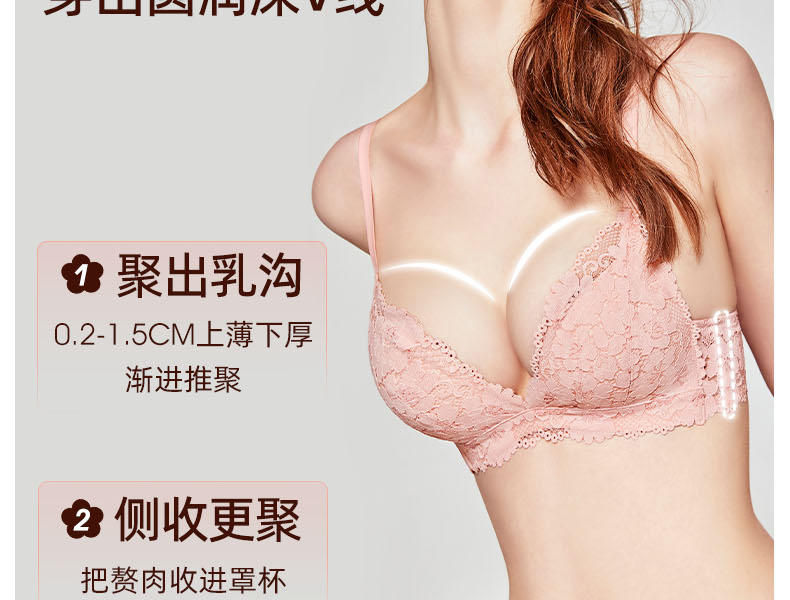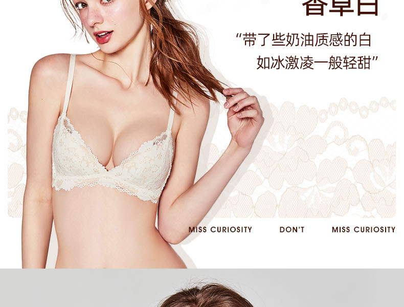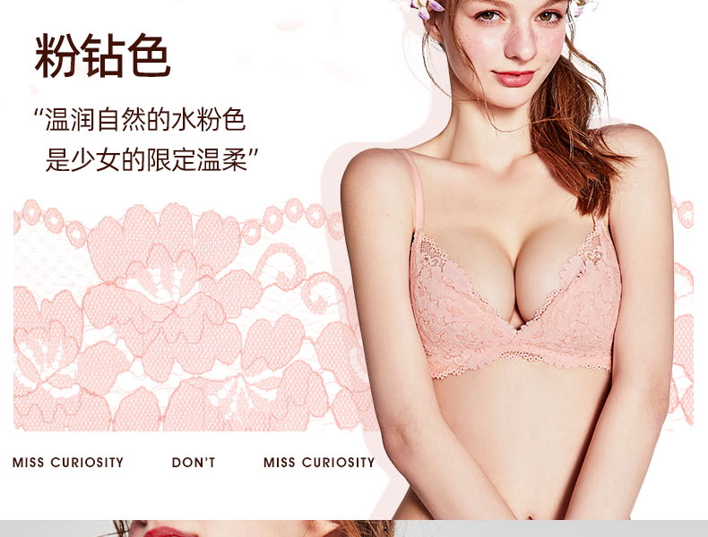 好奇蜜斯蕾丝内衣女聚拢小胸显大无钢圈性感文胸罩套装夏季防下垂 卓拉