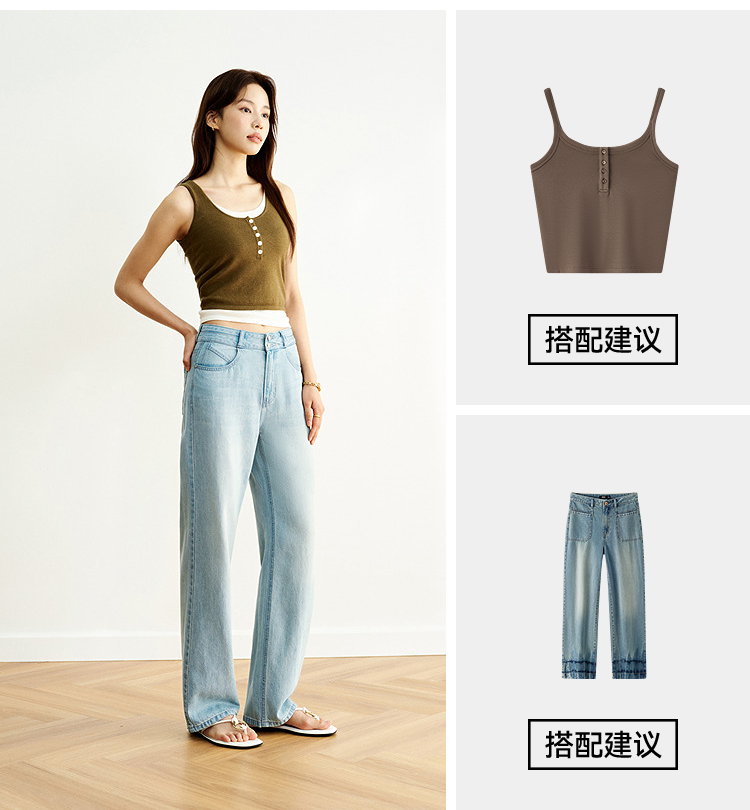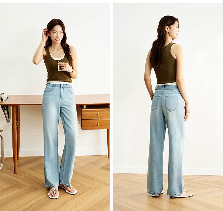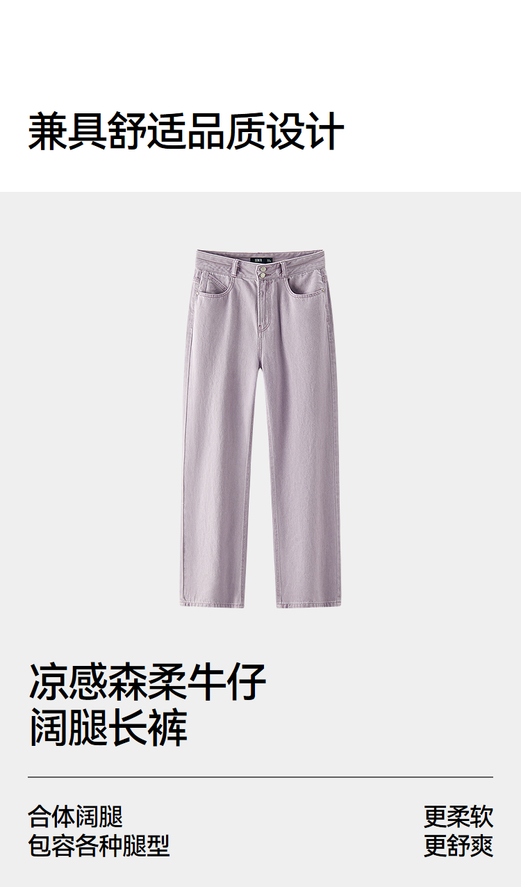 森柔|森马牛仔裤女夏季凉感长裤时尚女士复古甜酷百搭显瘦阔腿裤