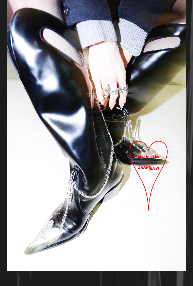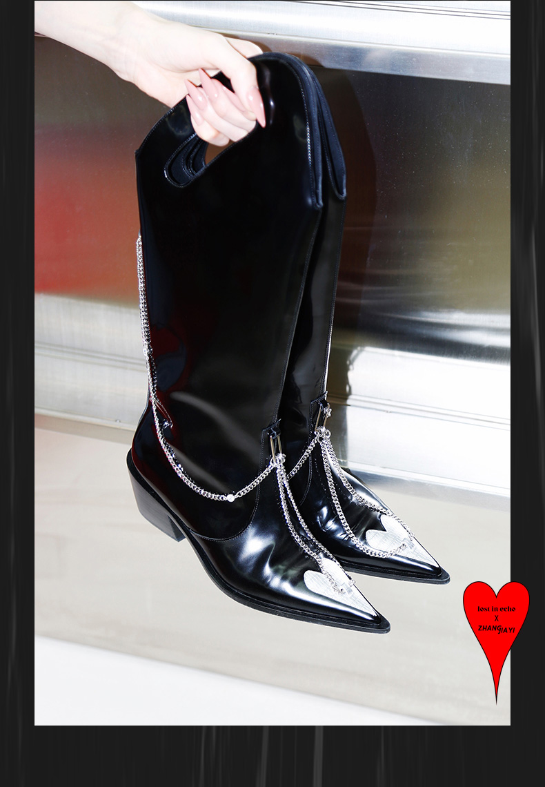 【微瑕疵不退不换】lost in echo x ZHANGJIAYI 设计师 爱心骑士西部靴