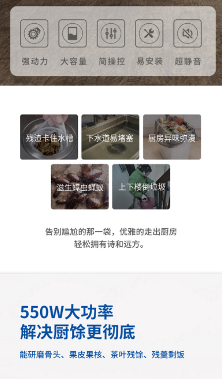 海尔垃圾处理器厨余垃圾处理器厨房垃圾处理器家用厨房粉碎机 无线开关LD550-H2