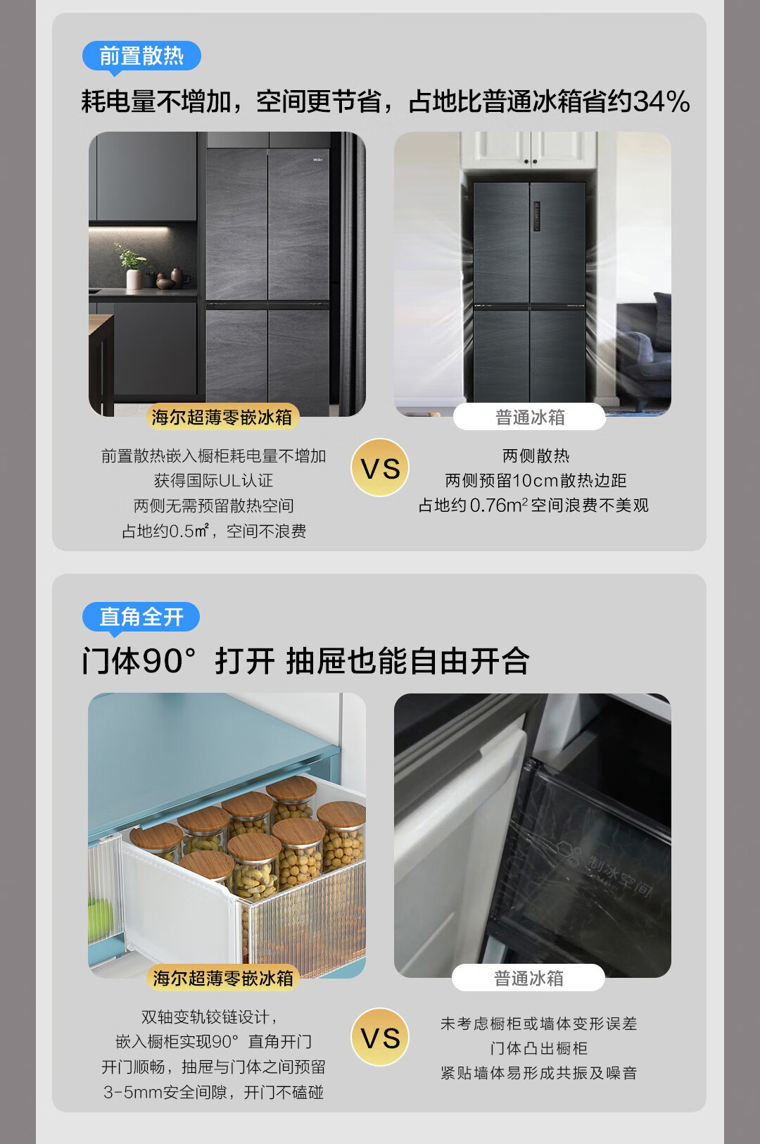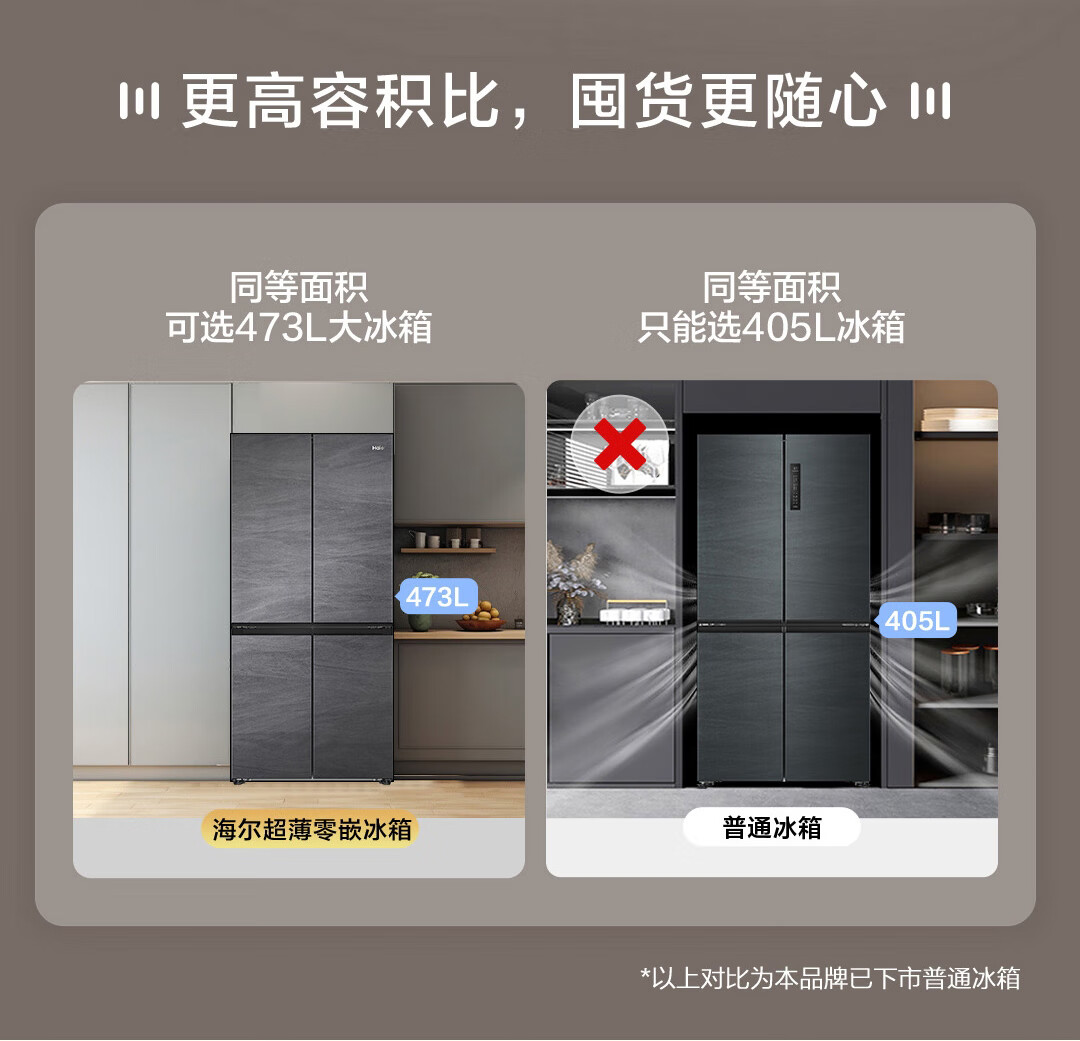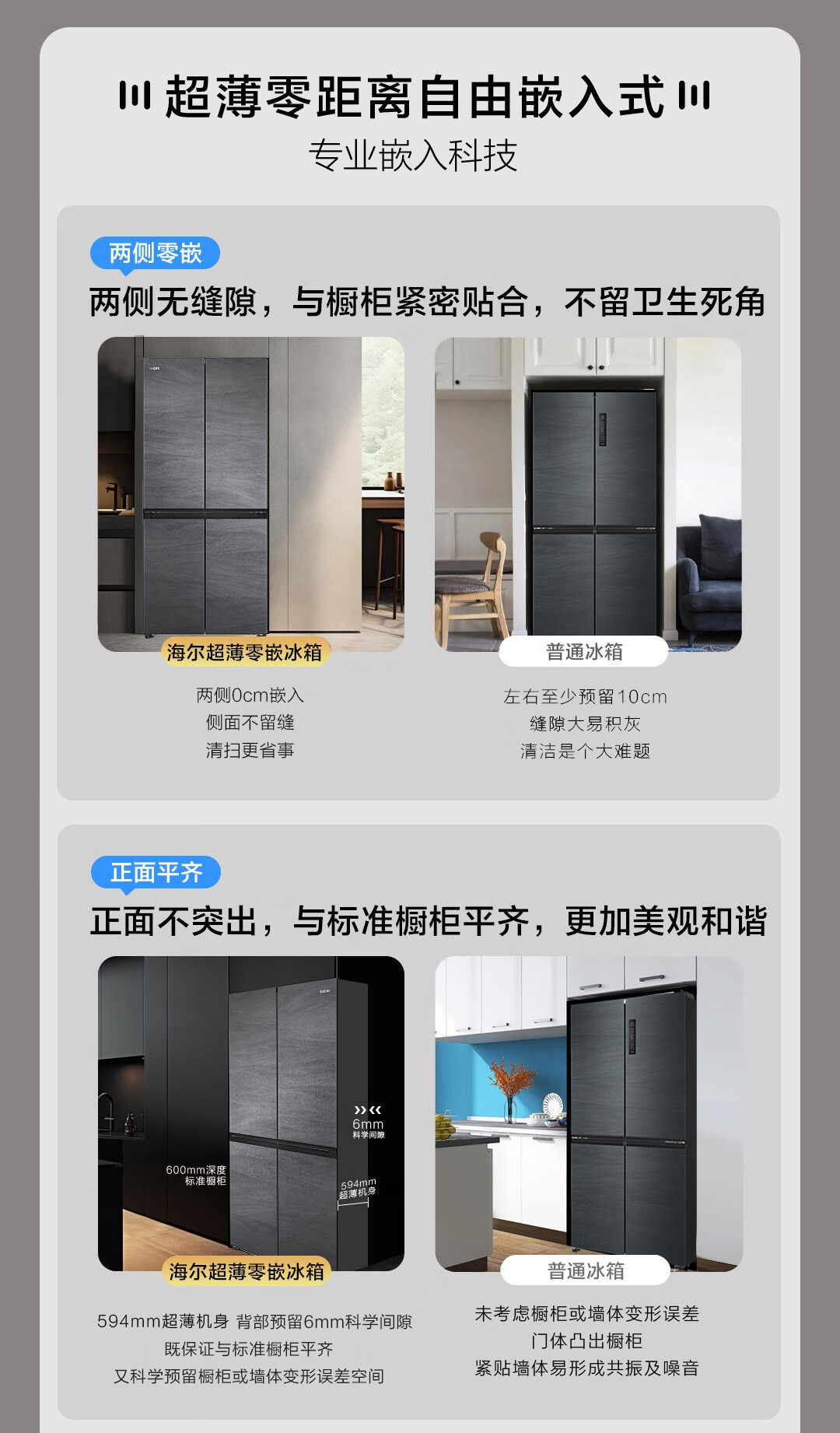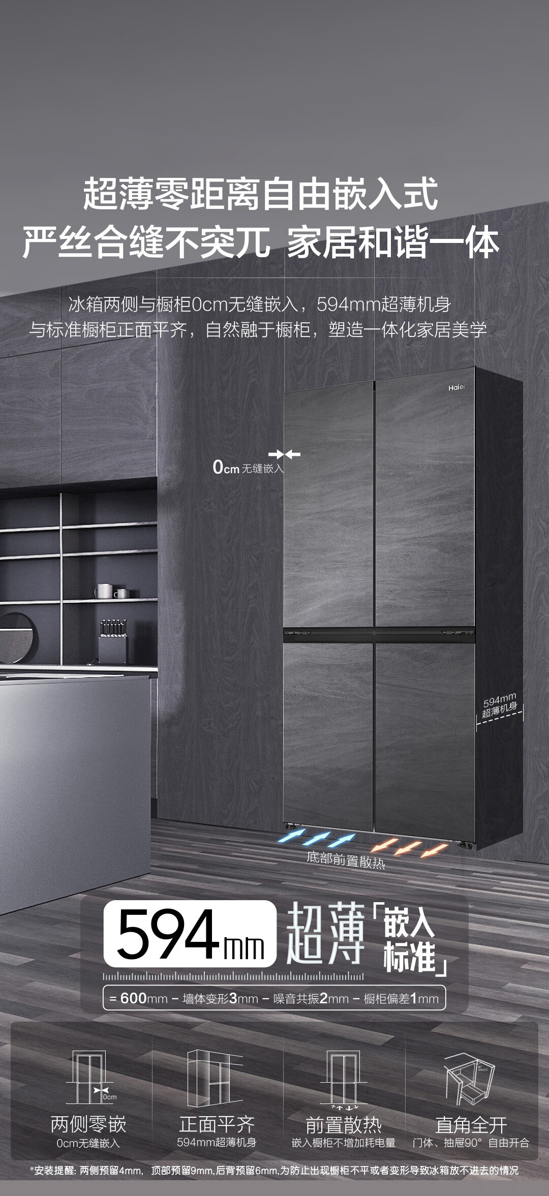 【2024新品】海尔473升594mm专业超薄零嵌入式一级能效双变频大容量底部散热冰箱EPP超净 BCD-473WGHTDB9S8U1