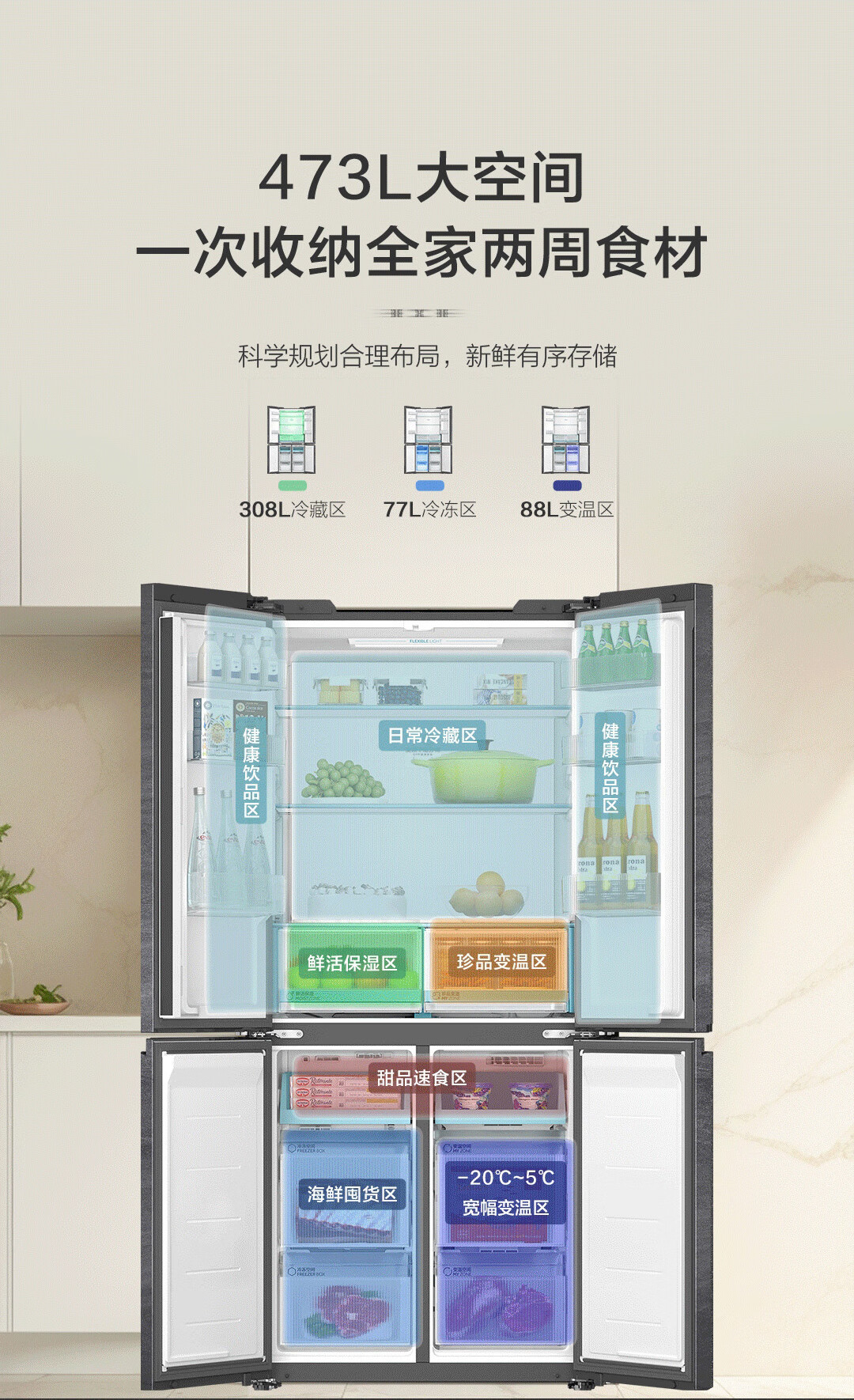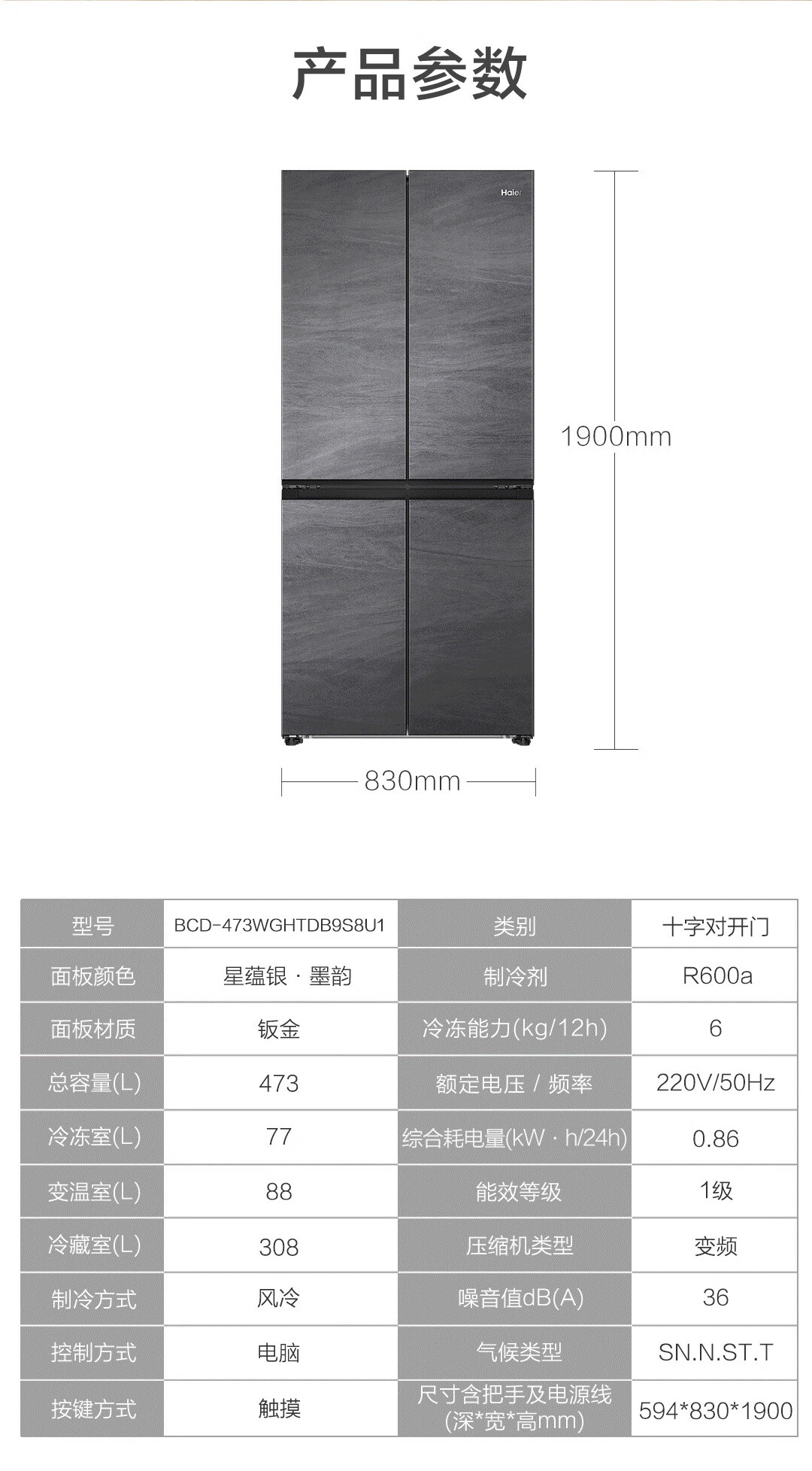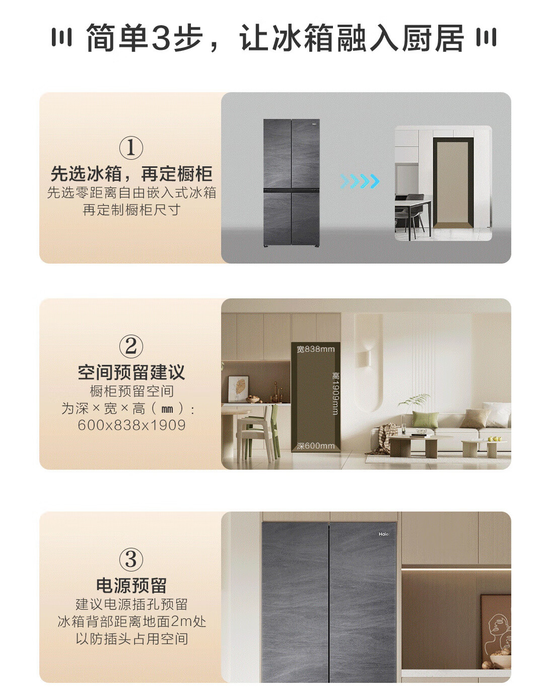 【2024新品】海尔473升594mm专业超薄零嵌入式一级能效双变频大容量底部散热冰箱EPP超净 BCD-473WGHTDB9S8U1