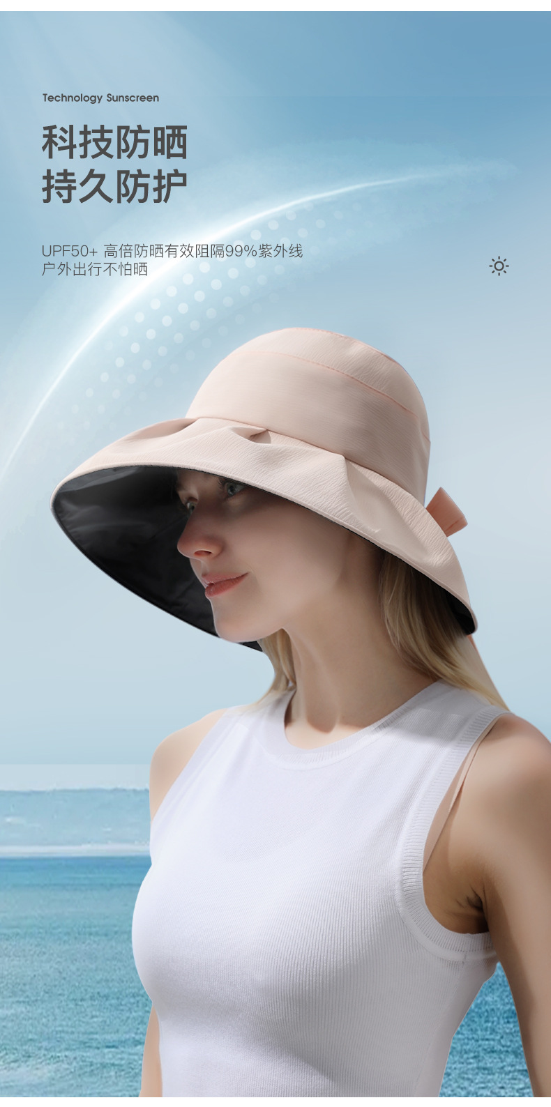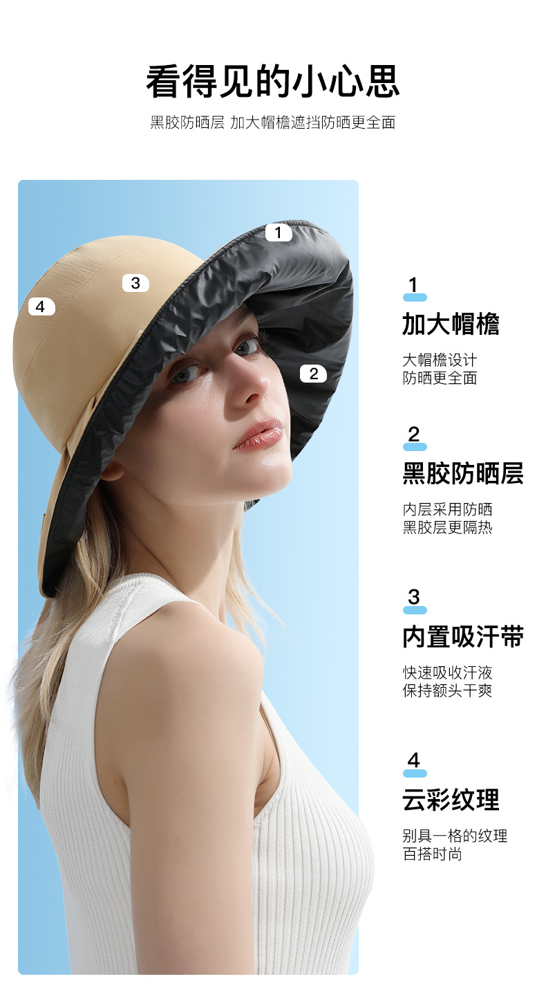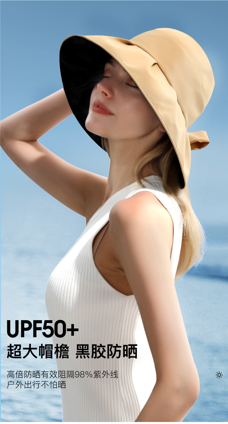 夏季防晒渔夫帽子女士黑胶涂层防紫外线可折叠大帽檐太阳帽XMZ229