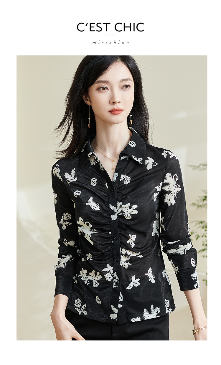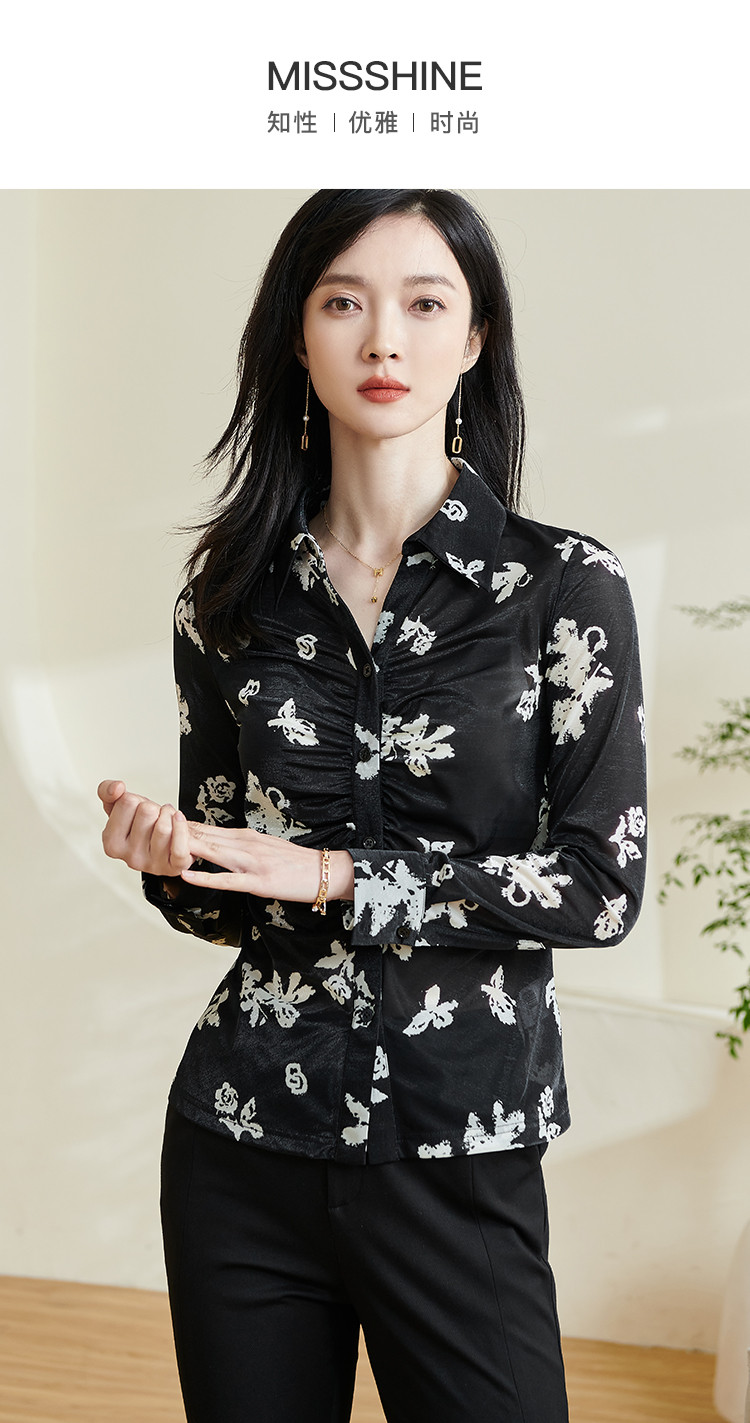 剩S 米思阳【印花衬衫】2026春季新款时尚通勤气质修身显瘦衬衣女