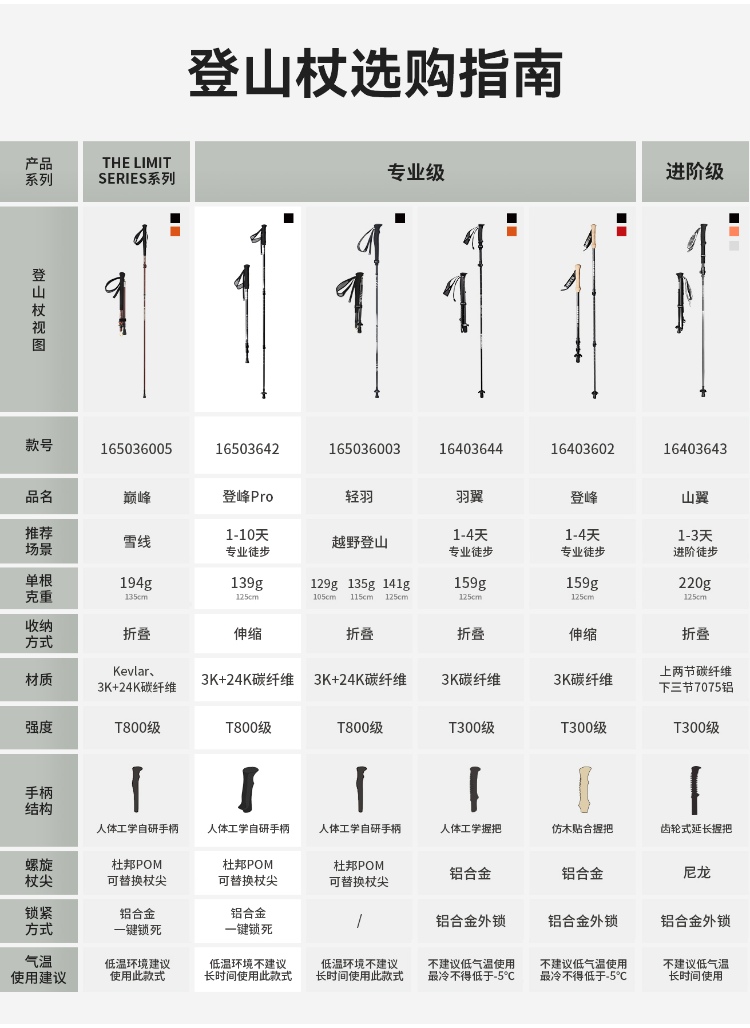 【登峰Pro】伯希和户外登山杖徒步碳纤维超轻伸缩爬山装备手杖