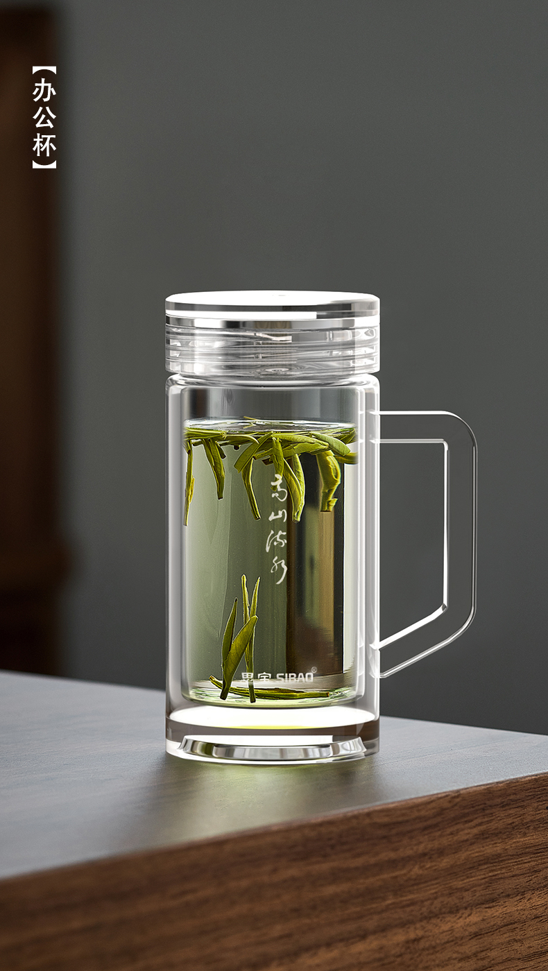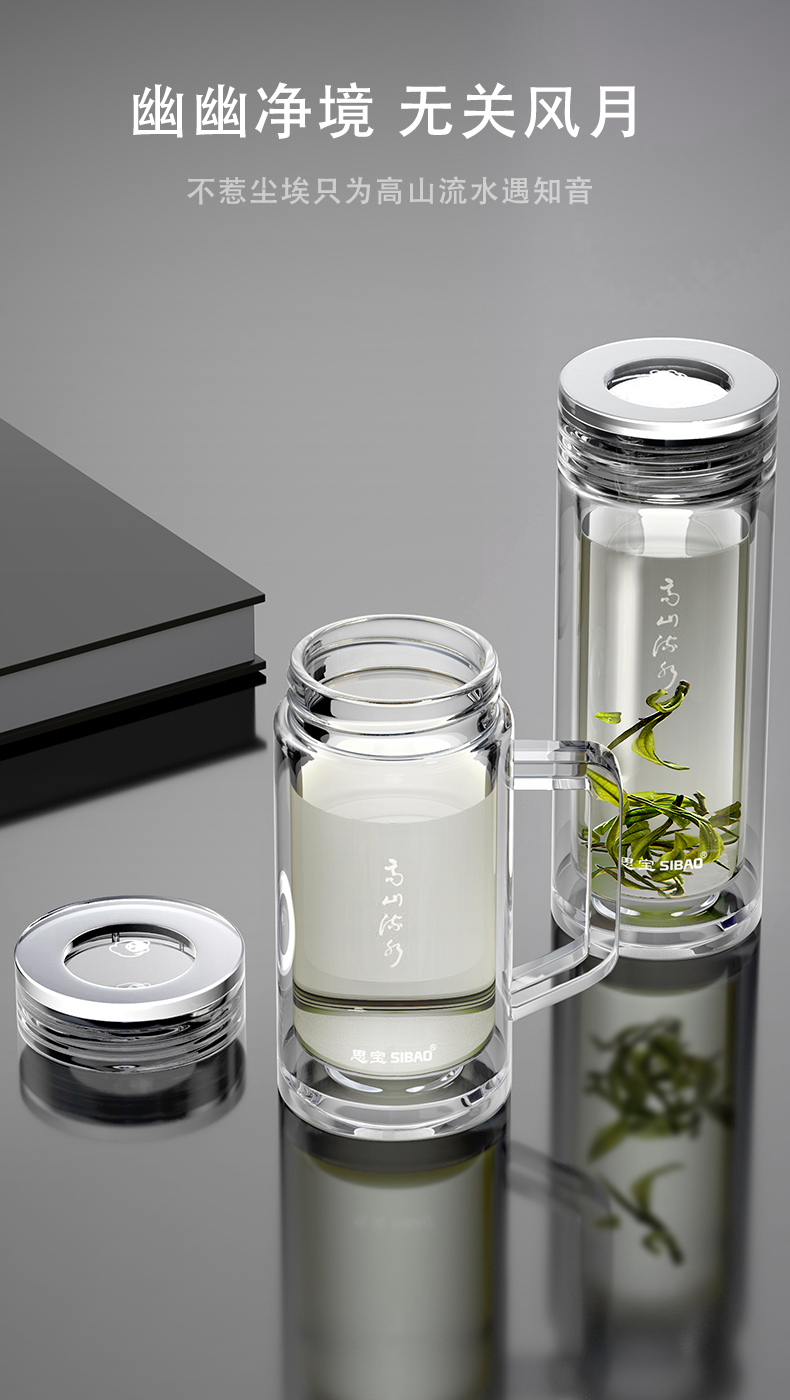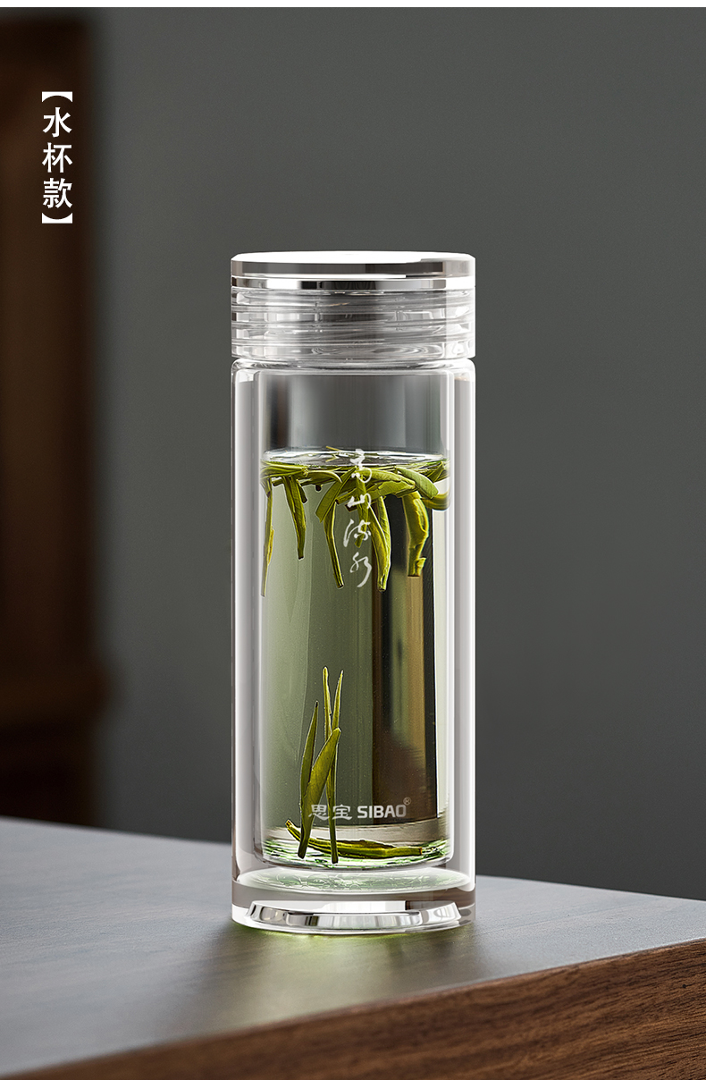 思宝官方旗舰店高山流水直筒男女士商务双层玻璃杯商场同款茶水杯