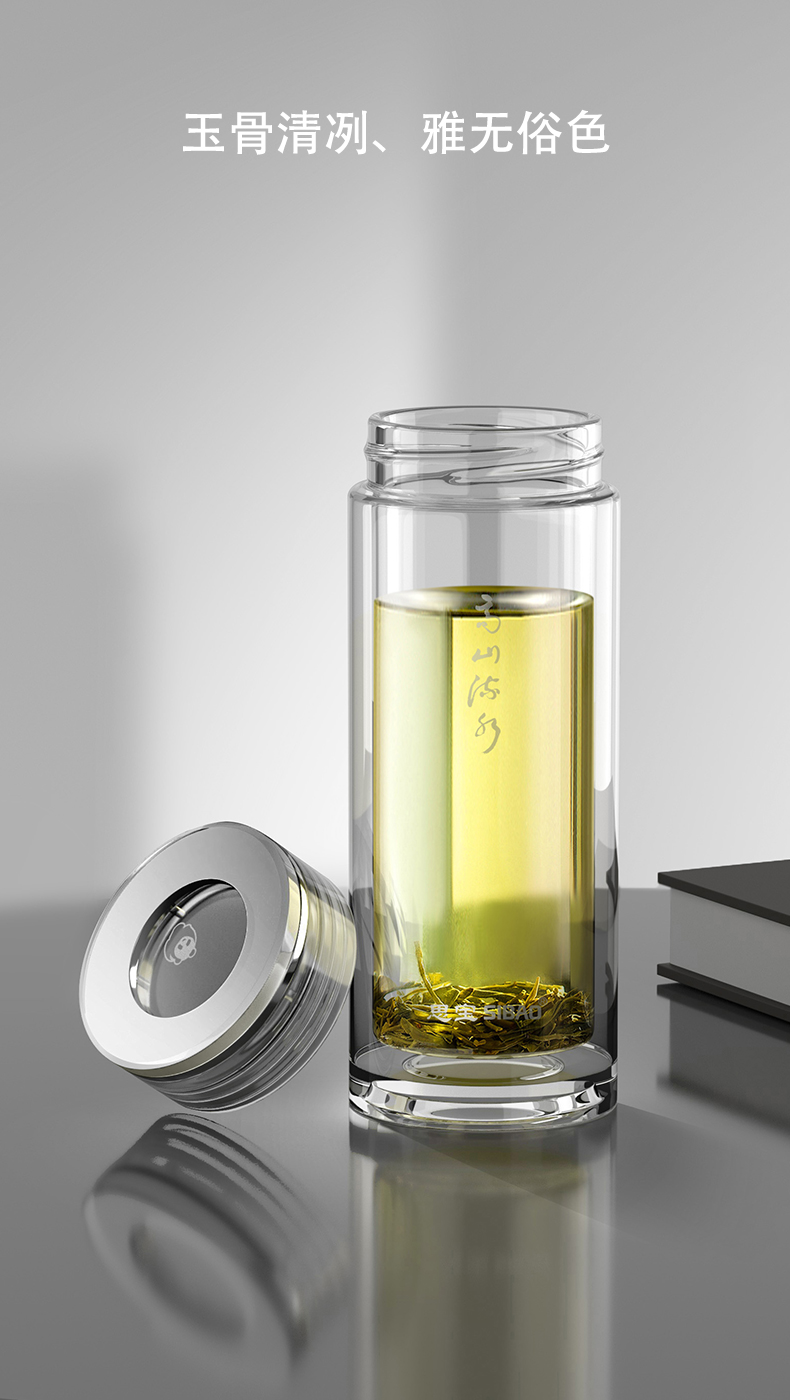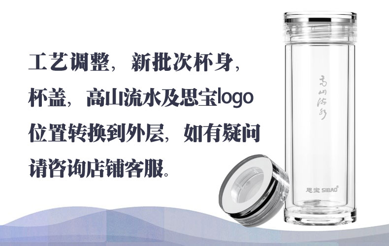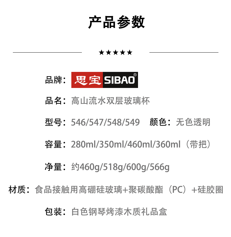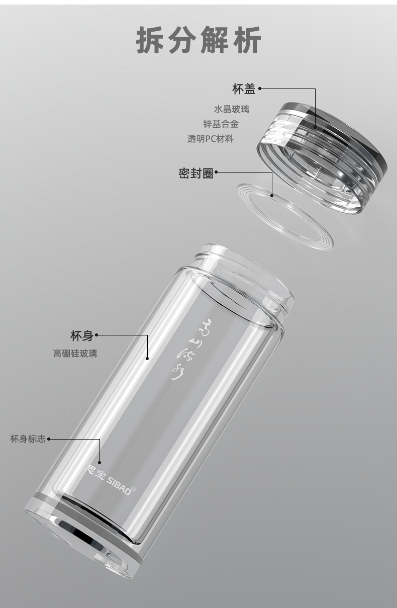 思宝官方旗舰店高山流水直筒男女士商务双层玻璃杯商场同款茶水杯