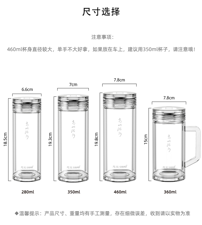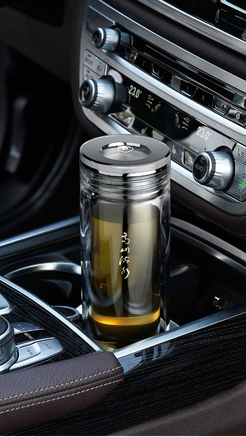 思宝旗舰店善若水1/2/3号双层高硼硅玻璃杯着晶工艺车载便携水杯