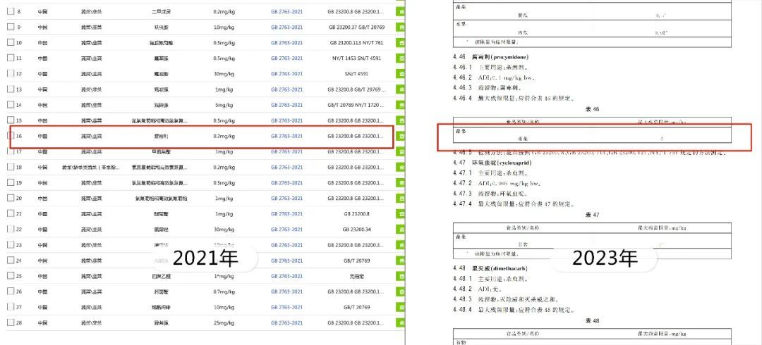 前阵子相关方发布的新农残执行标准,韭菜的腐霉利(杀菌剂)残留上限从2021年的0.2mg/kg变成了5mg/kg了!