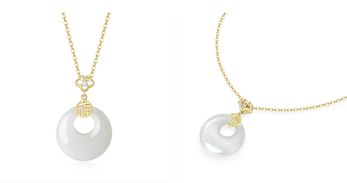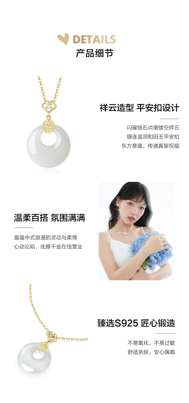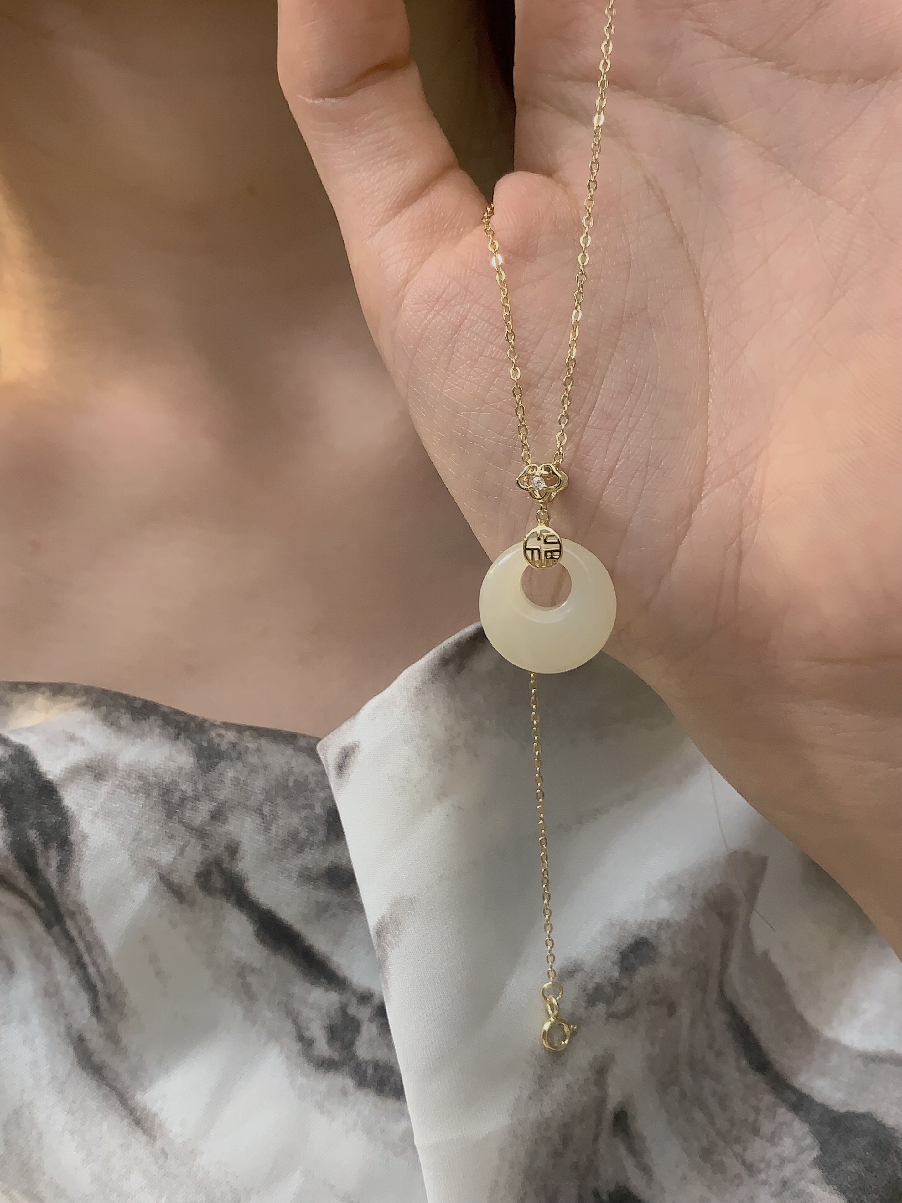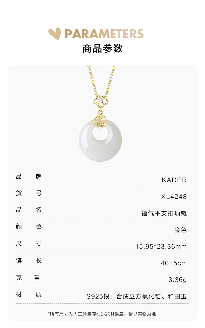 KADER卡蒂罗 福气平安扣项链 925银和田玉新中式国潮风新年款幸运锁骨链 莹润气质优雅浪漫配饰温柔百搭 礼盒装