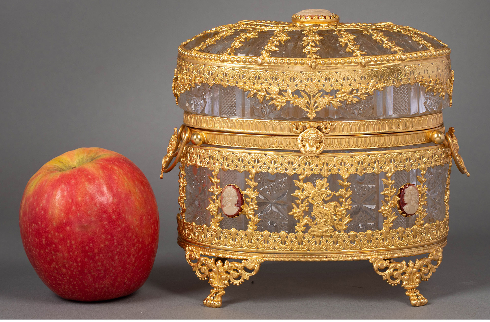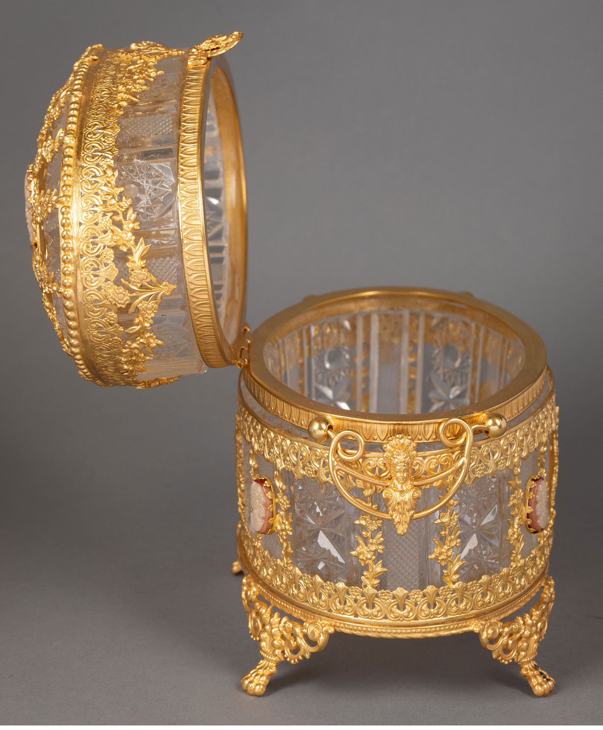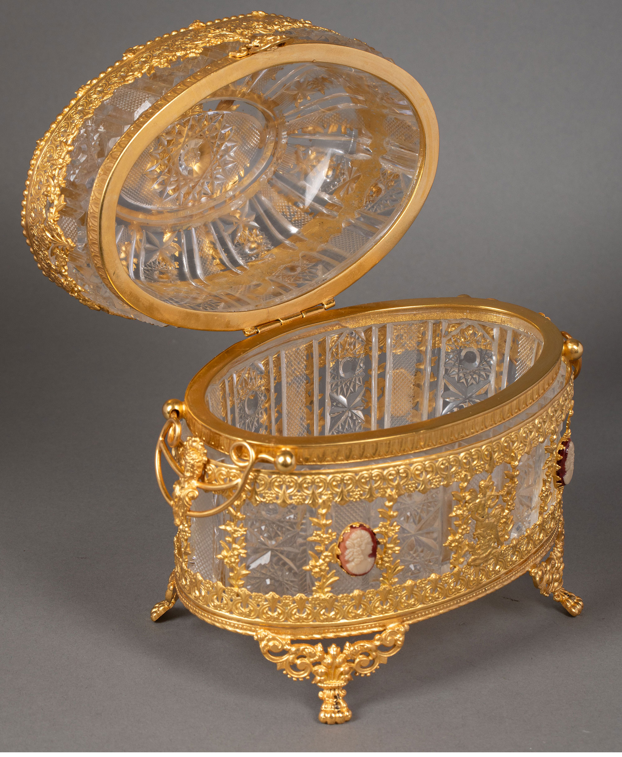 19世纪末法国出品精灵仙子主题铜鎏金精雕嵌古典女子肖像卡梅奥装饰水晶珍宝盒