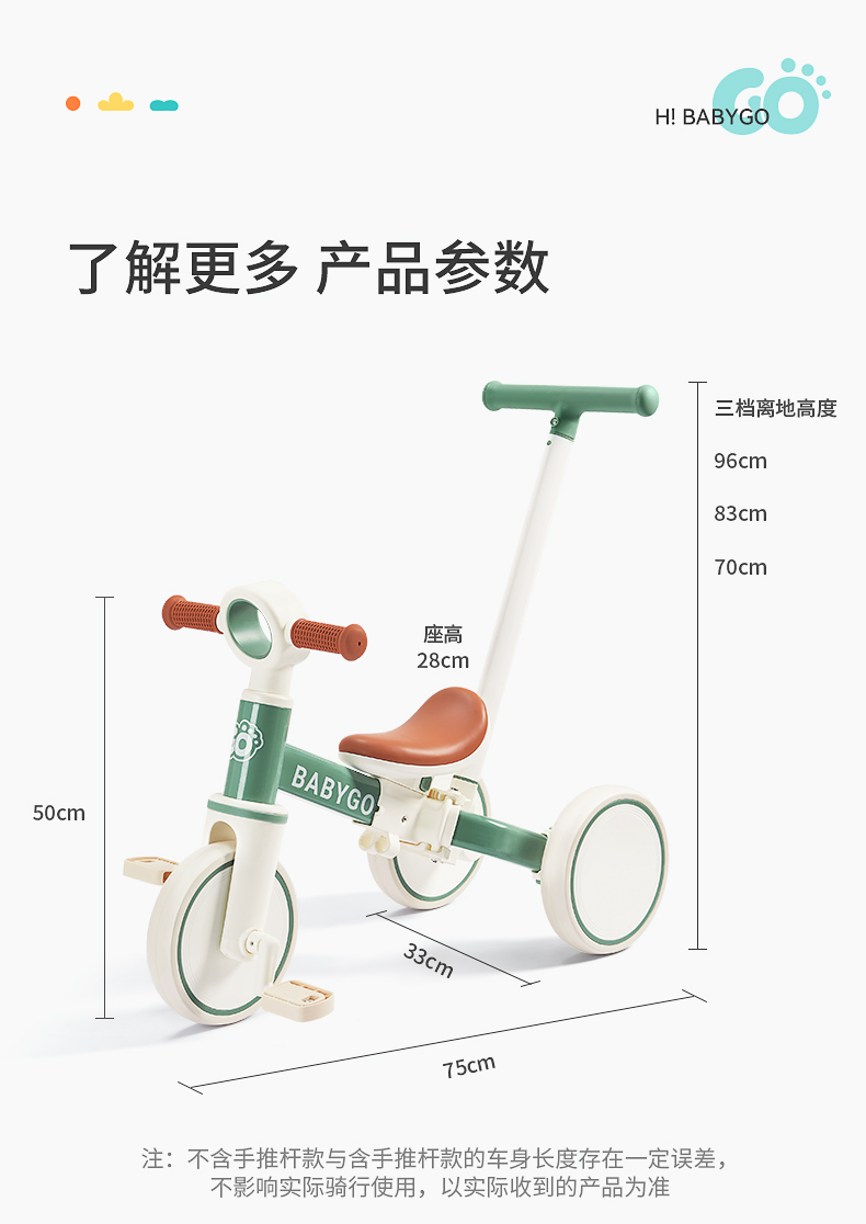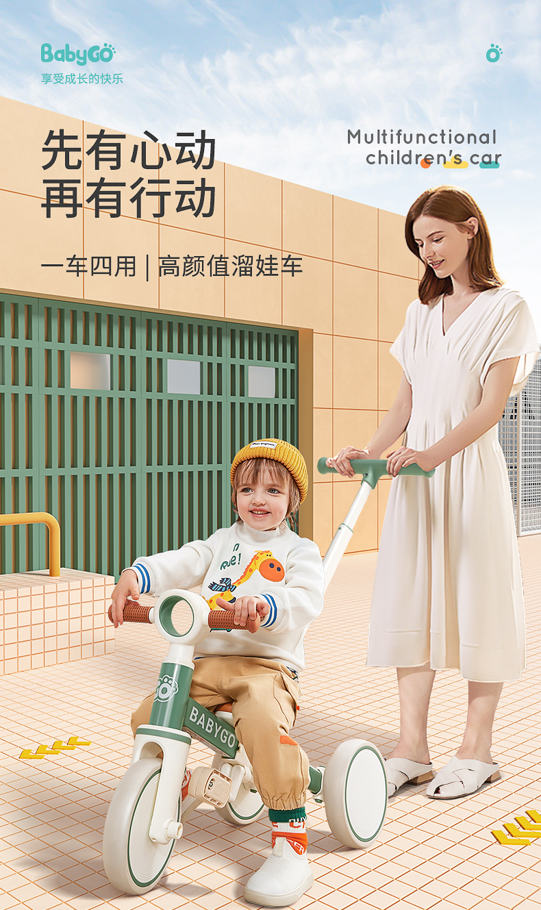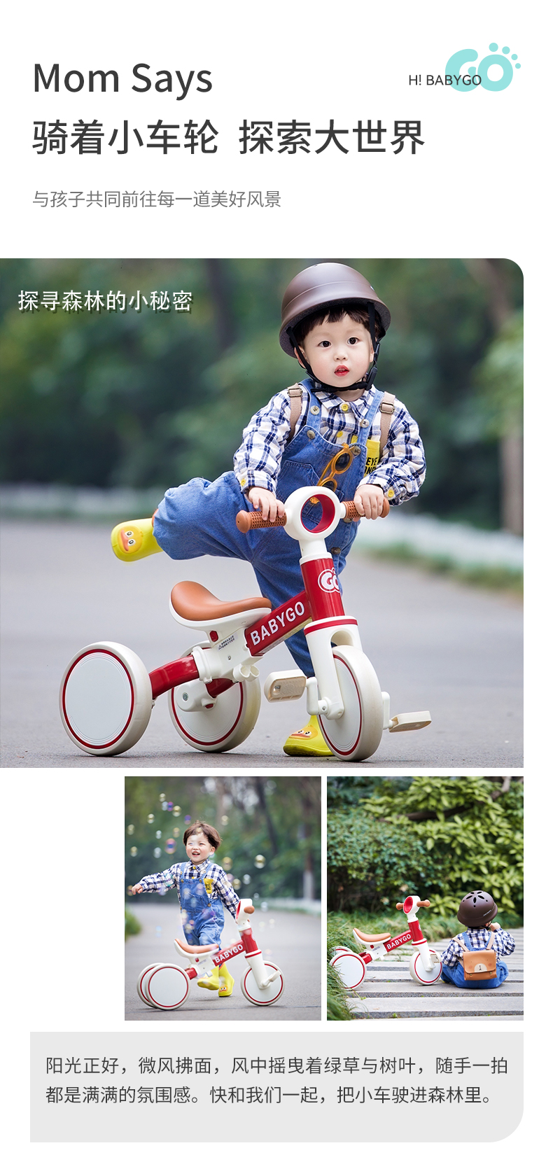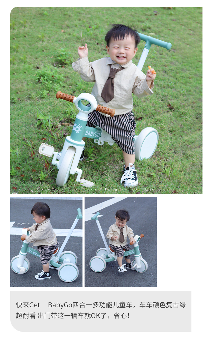 【佳琦力荐 一车三用 高颜值 高承重防侧翻 】babygo儿童三轮车脚踏车遛娃神器多功能轻便自行车宝宝小孩平衡车