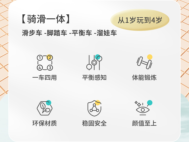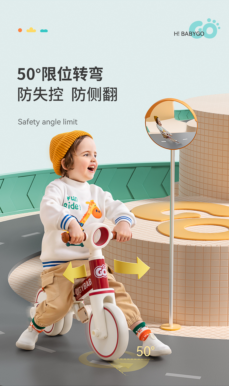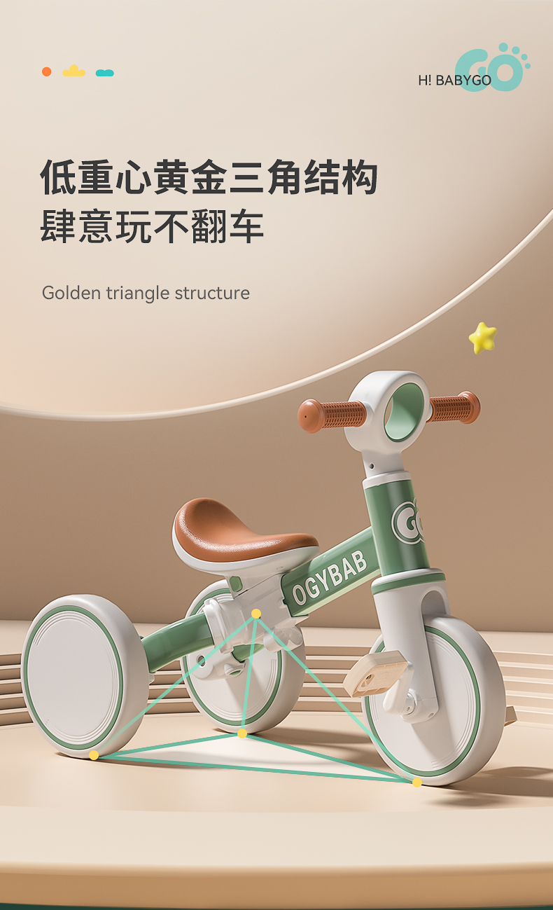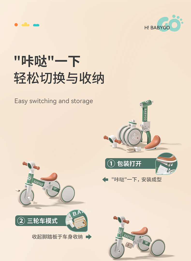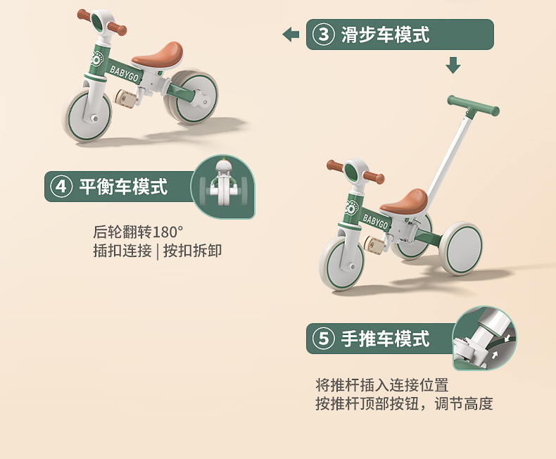 【佳琦力荐 一车三用 高颜值 高承重防侧翻 】babygo儿童三轮车脚踏车遛娃神器多功能轻便自行车宝宝小孩平衡车