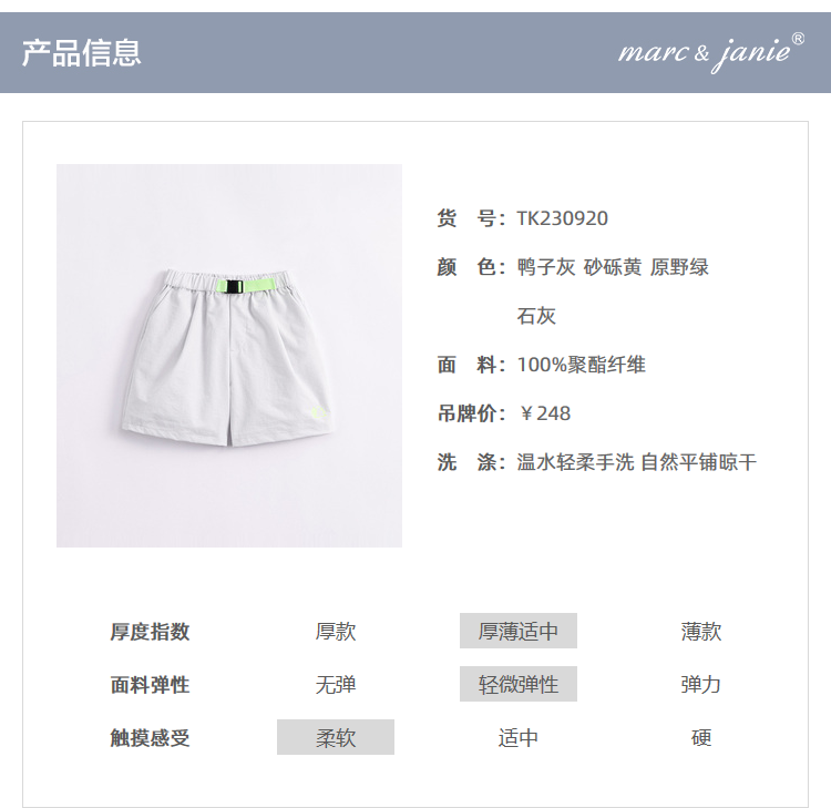 【速干】马克珍妮新款夏装 男童户外风宽松五分短裤230920