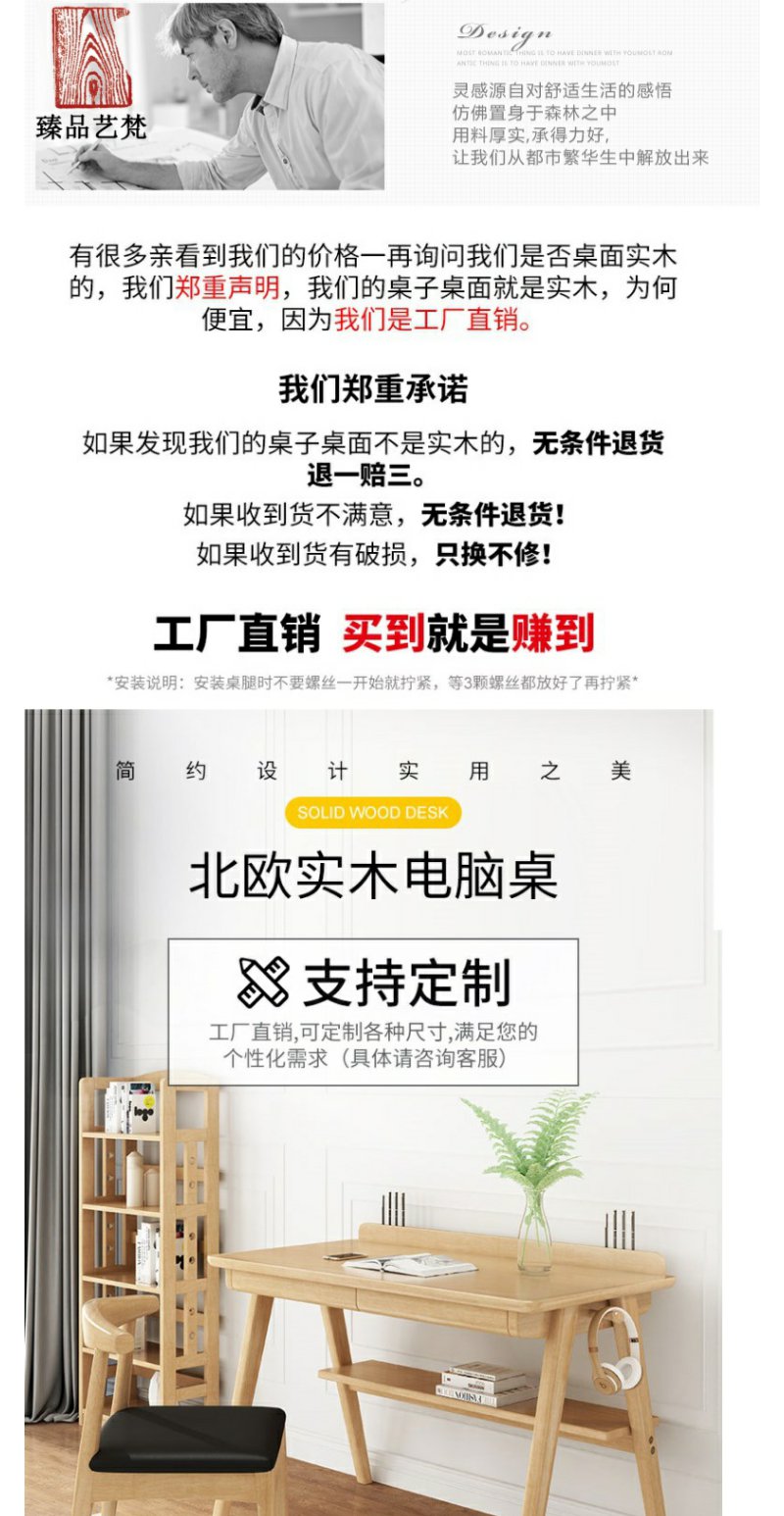 北欧实木书桌家用书房卧室中小学生写字桌台式电脑桌简约收纳书
