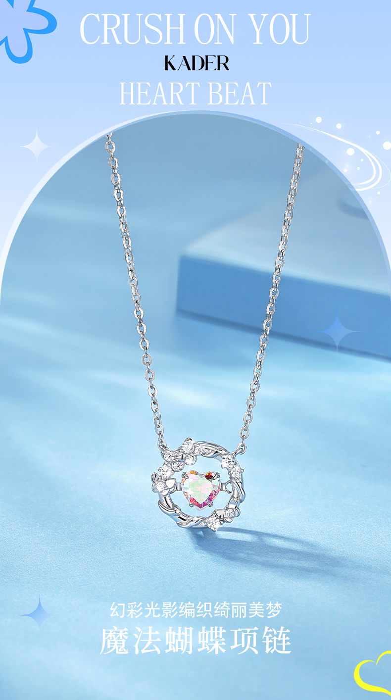卡蒂罗/KADER 魔法蝴蝶项链 心动蝴蝶为你心动轻奢原创设计吊坠 跳动的心浪漫可调节锁骨链