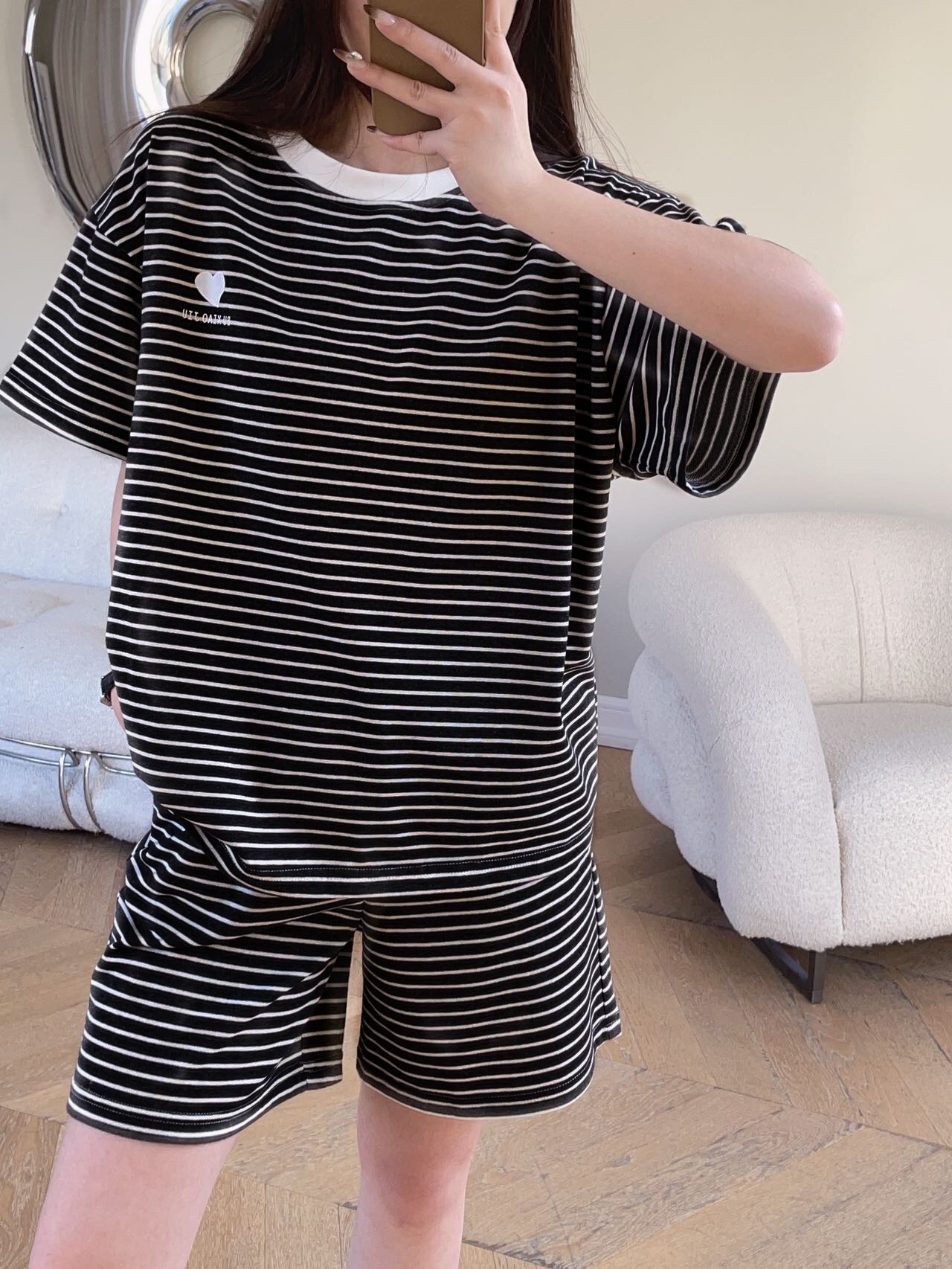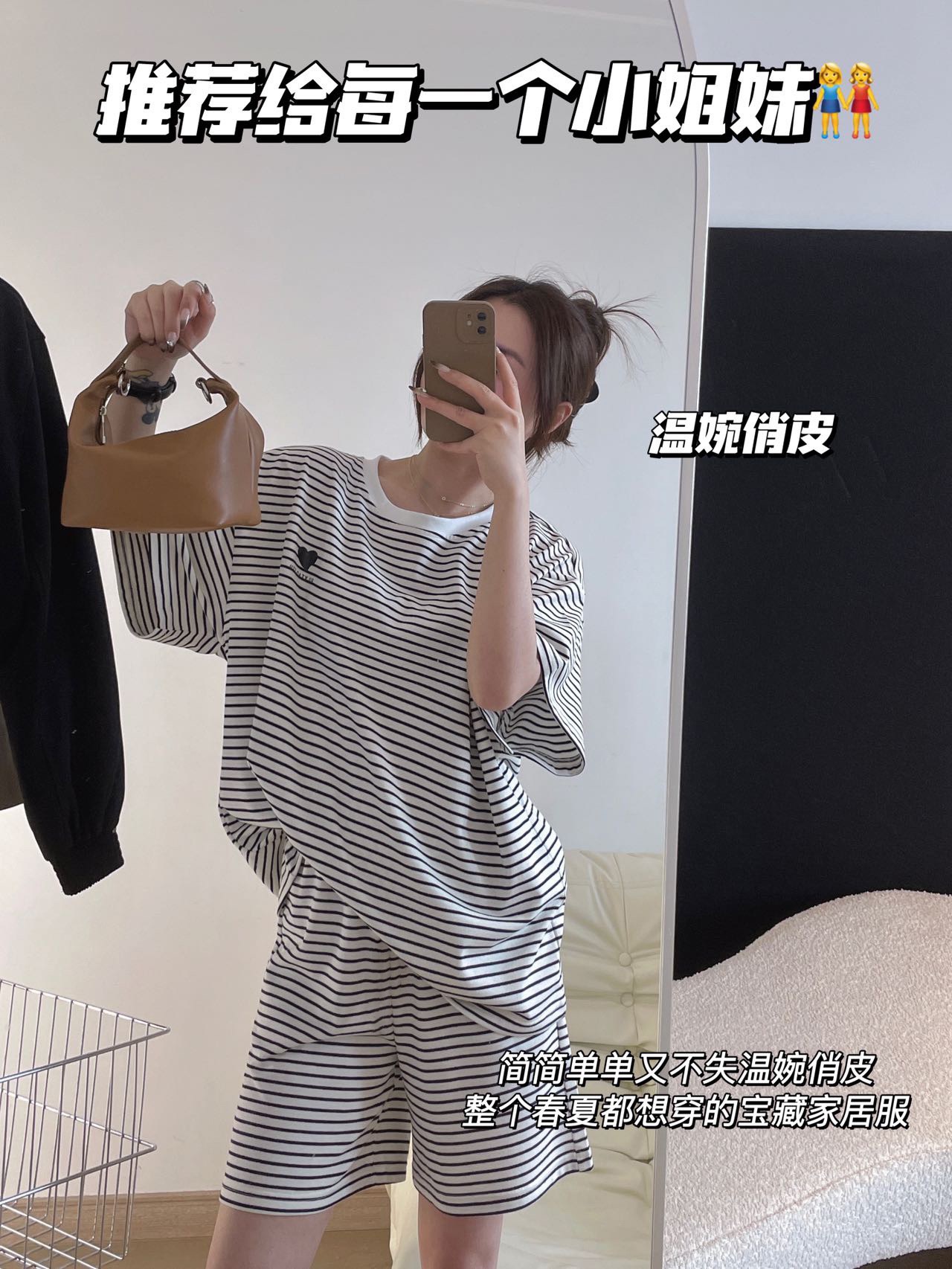 【YW】无忧购韩系慵懒休闲假日条纹套装T601(截单后7天发货)25年清仓捡漏