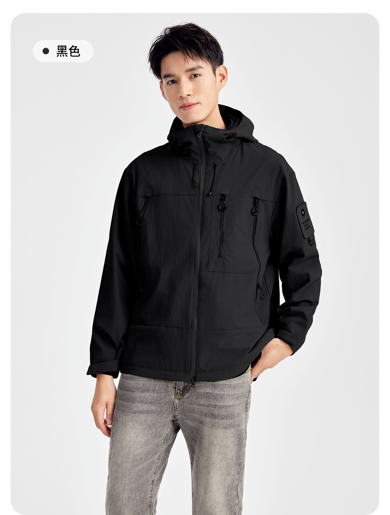 【冲锋系列】圣得西男士潮流工装登山夹克2025秋新款户外连帽外套