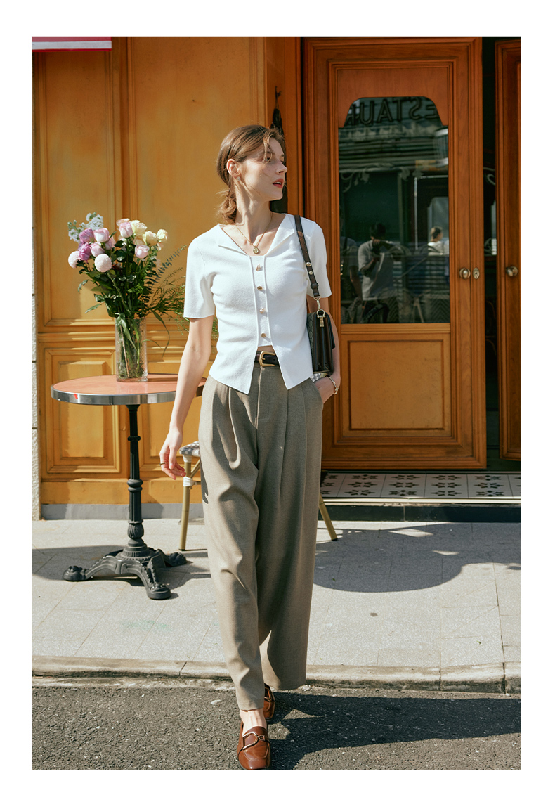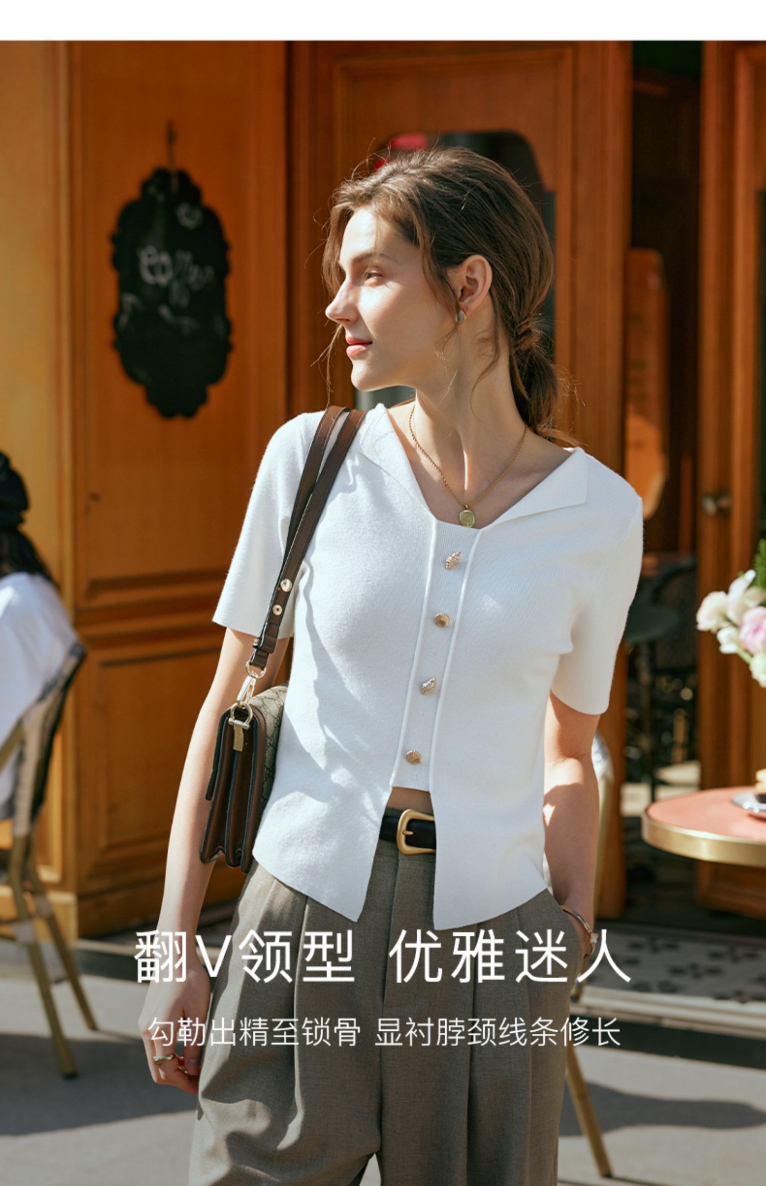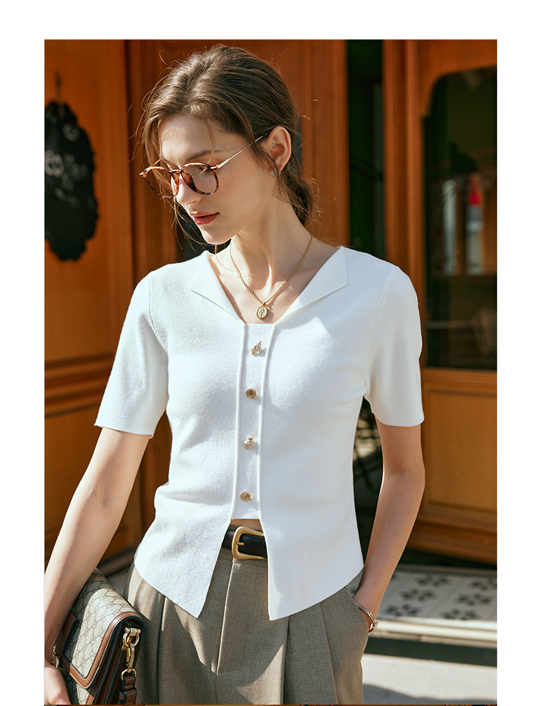 OLrain欧芮儿法式白色T恤女早春2024新款通勤百搭设计感短袖上衣