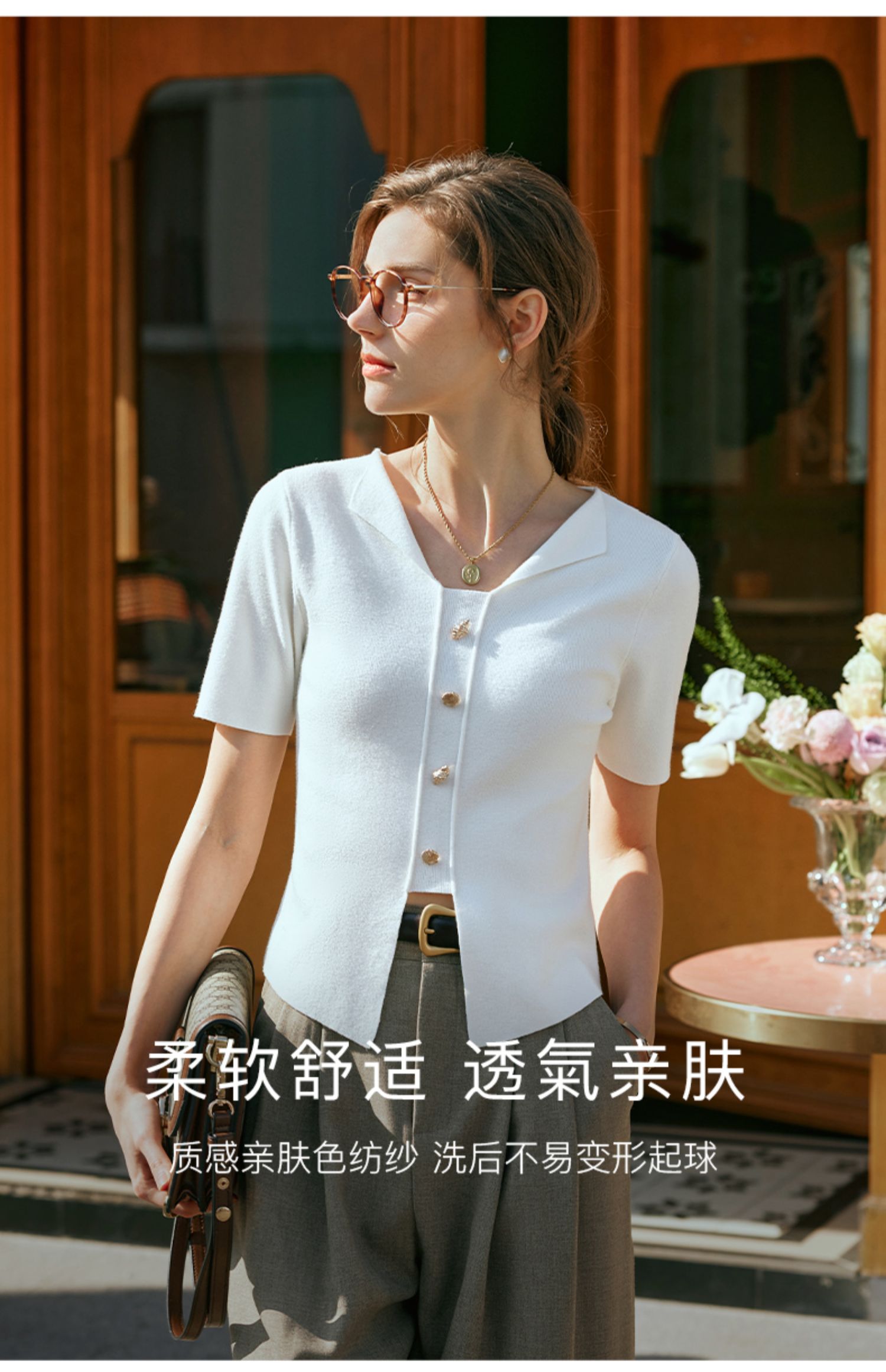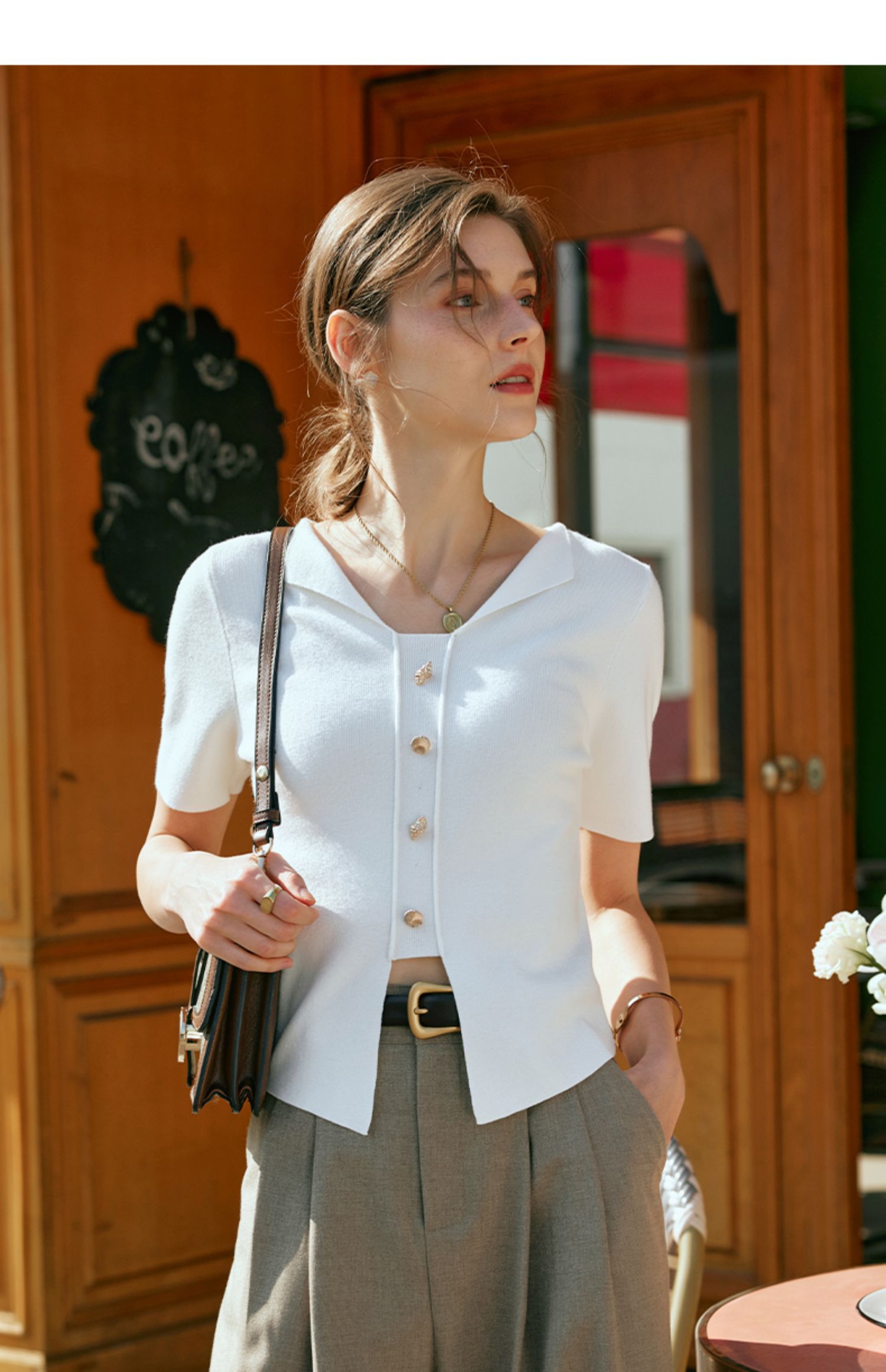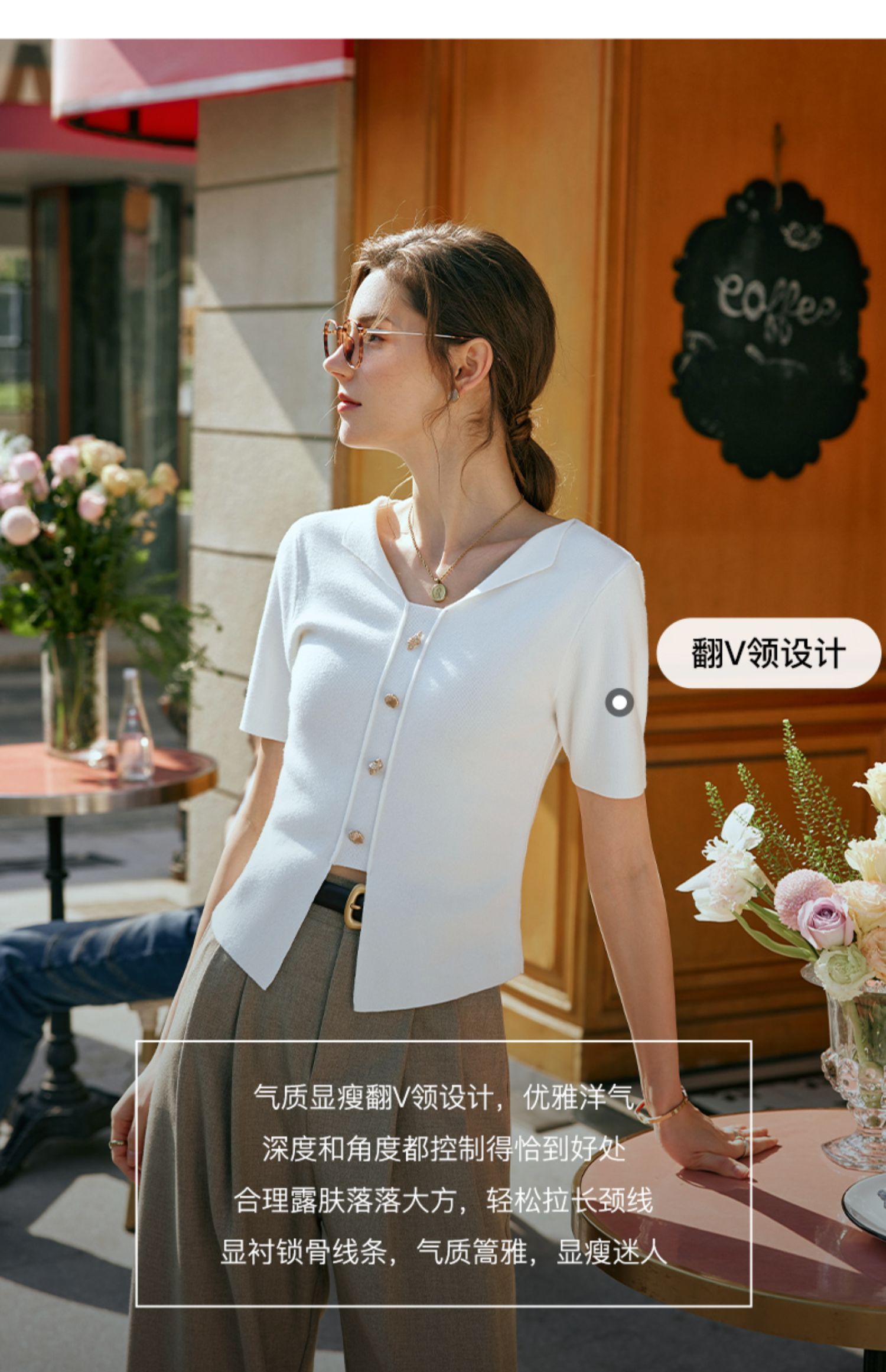 OLrain欧芮儿法式白色T恤女早春2024新款通勤百搭设计感短袖上衣