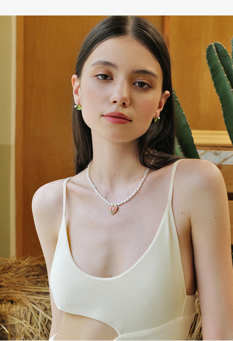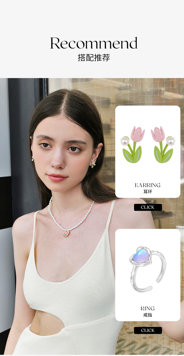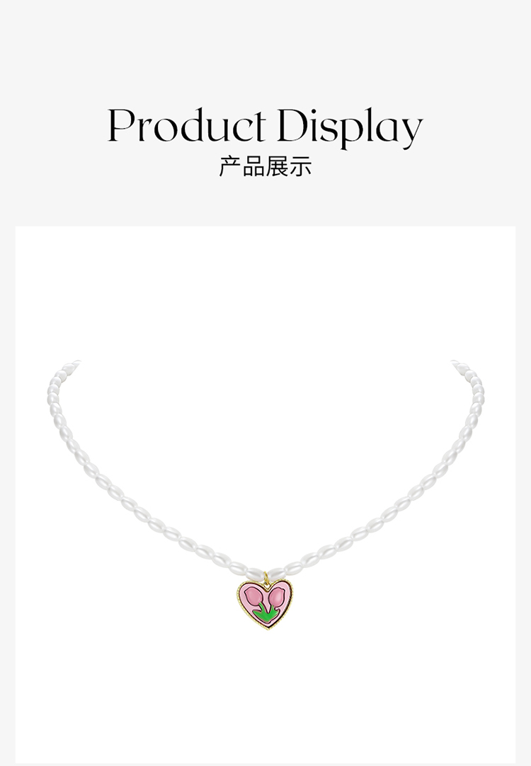 ZEGL爱心郁金香项链女芭比风粉色人造珍珠轻奢小众法式粉色花朵锁骨链