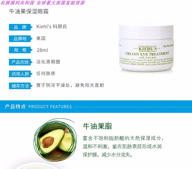 KIEHL'S/科颜氏 牛油果眼霜 28GJPY带授权招加盟代理
