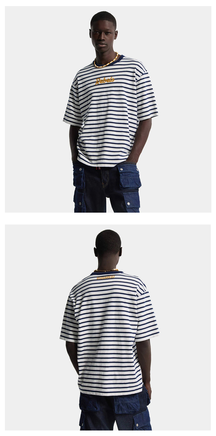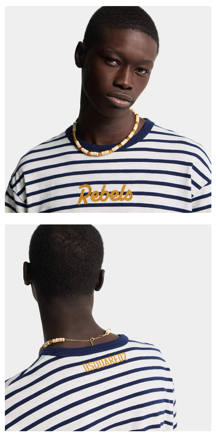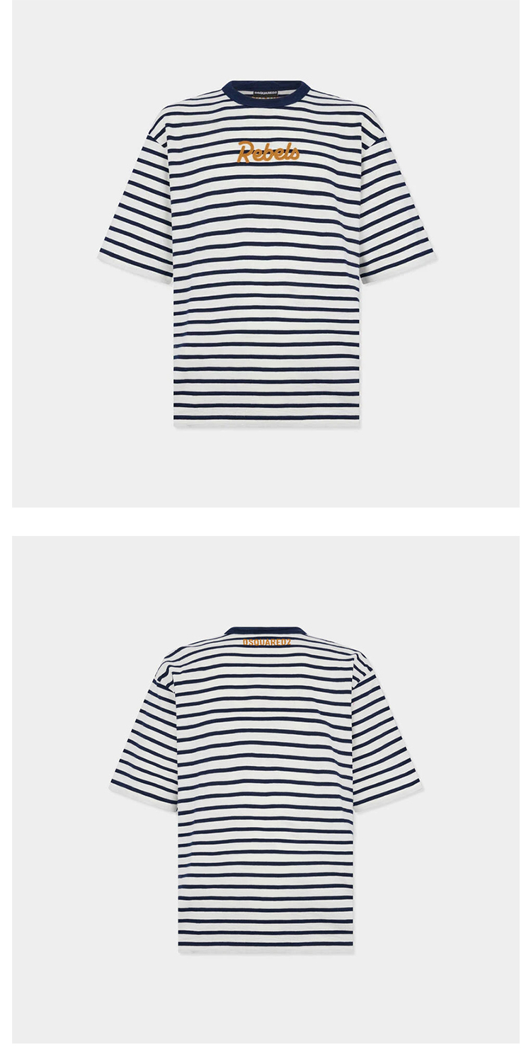 DSQUARED2 男士字母徽标印花棉质圆领短袖T恤 条纹 S74GD1533 D20107 001F