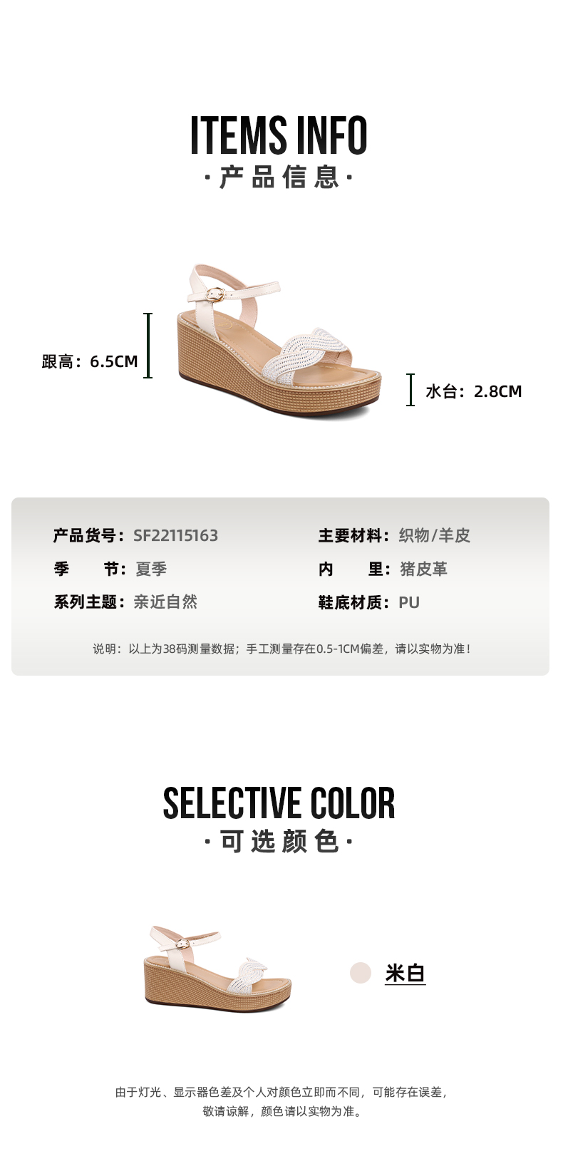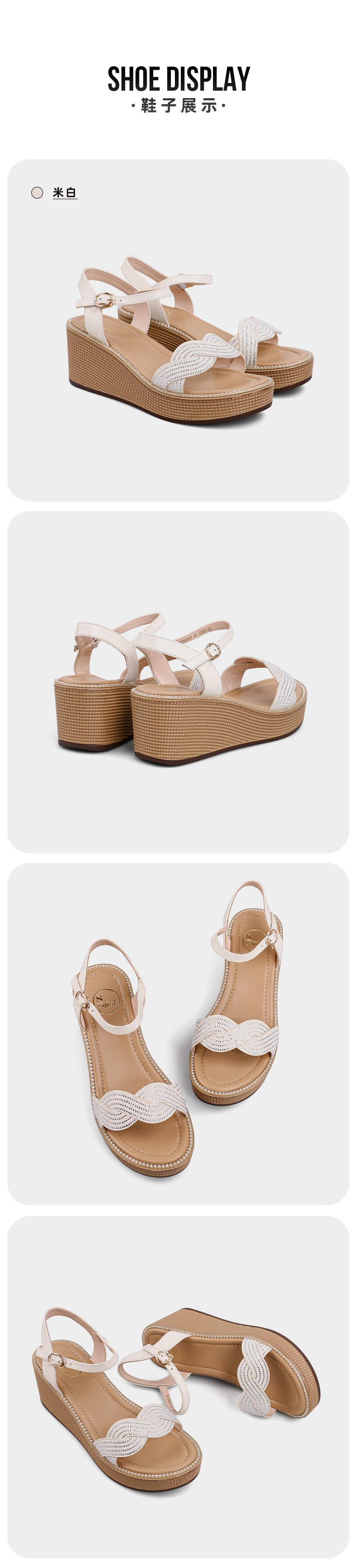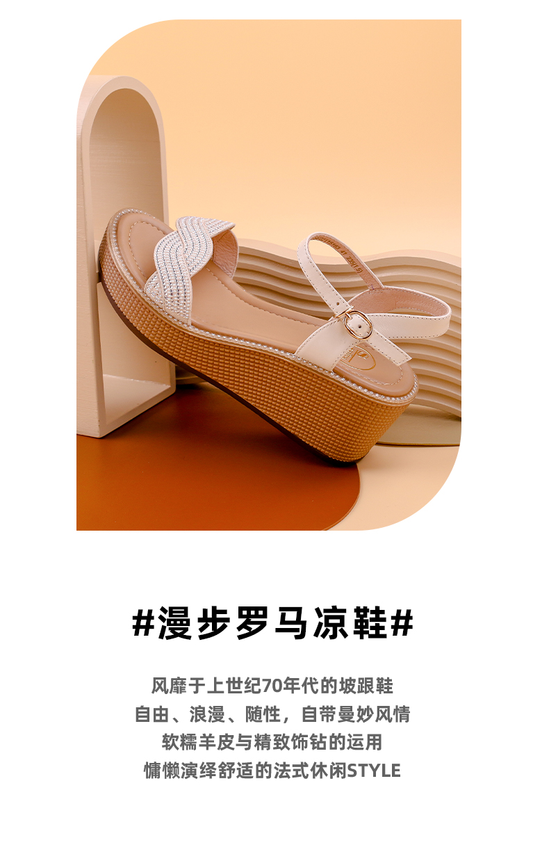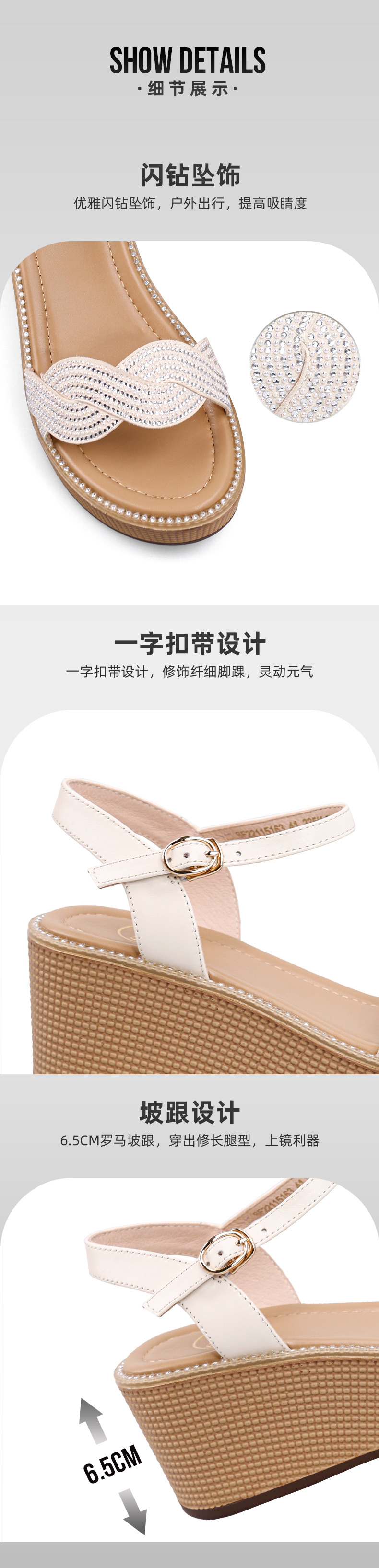 Safiya索菲娅羊皮烫钻罗马坡跟凉鞋2022新款一字带增高凉拖SF22115163