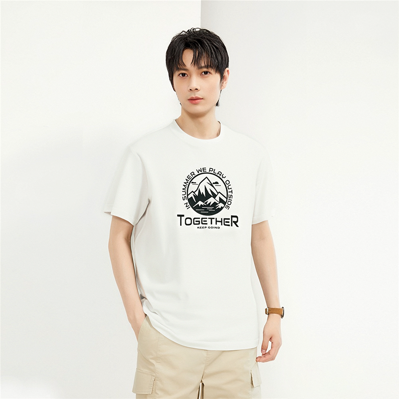 佐丹奴男装纯棉针织户外主题印花圆领短袖T恤 13094205