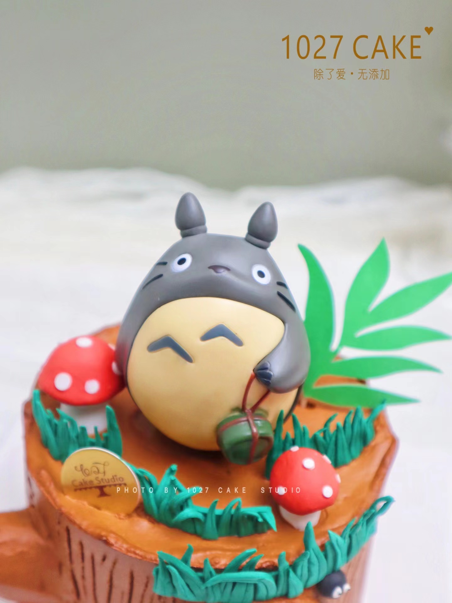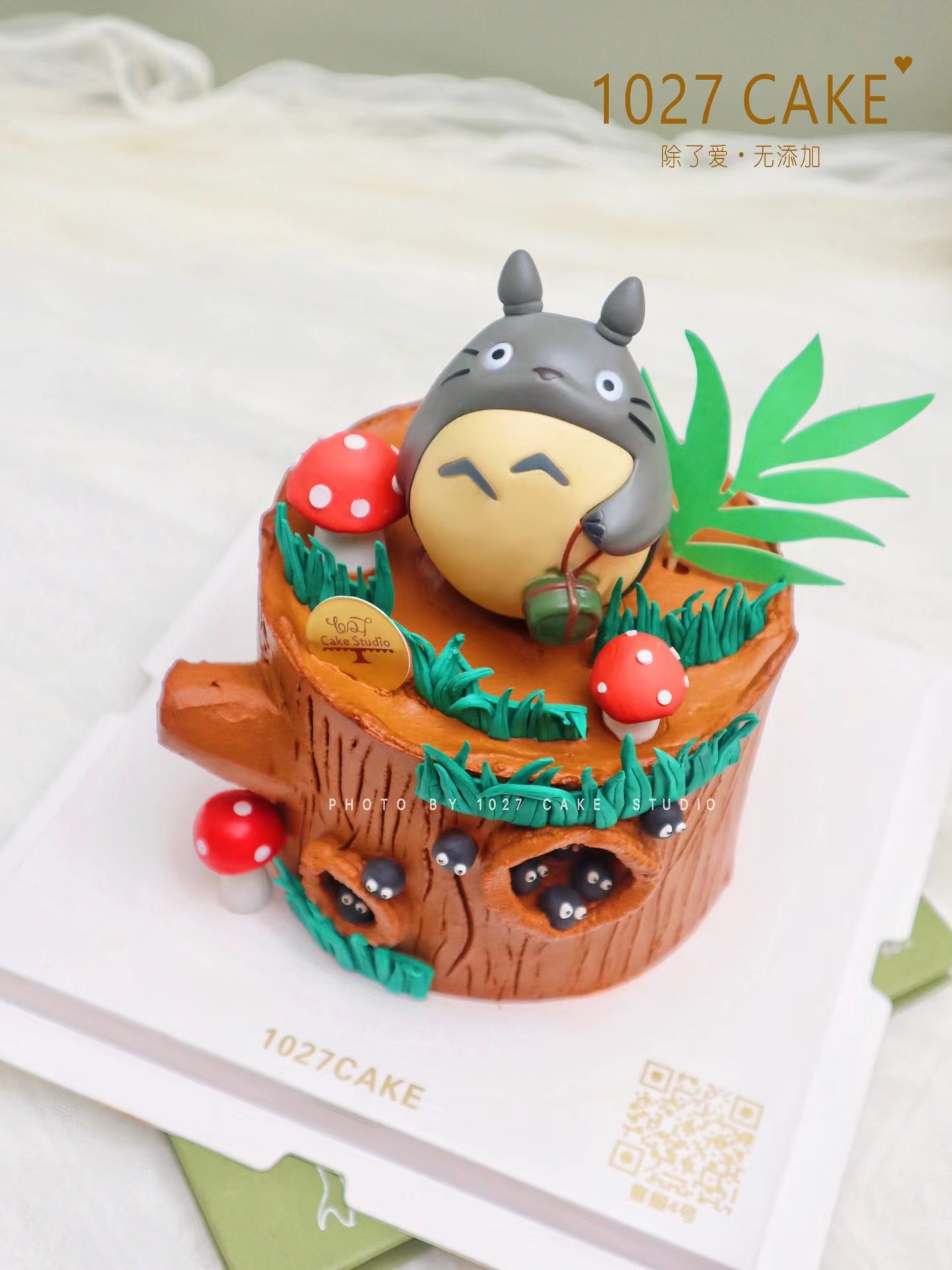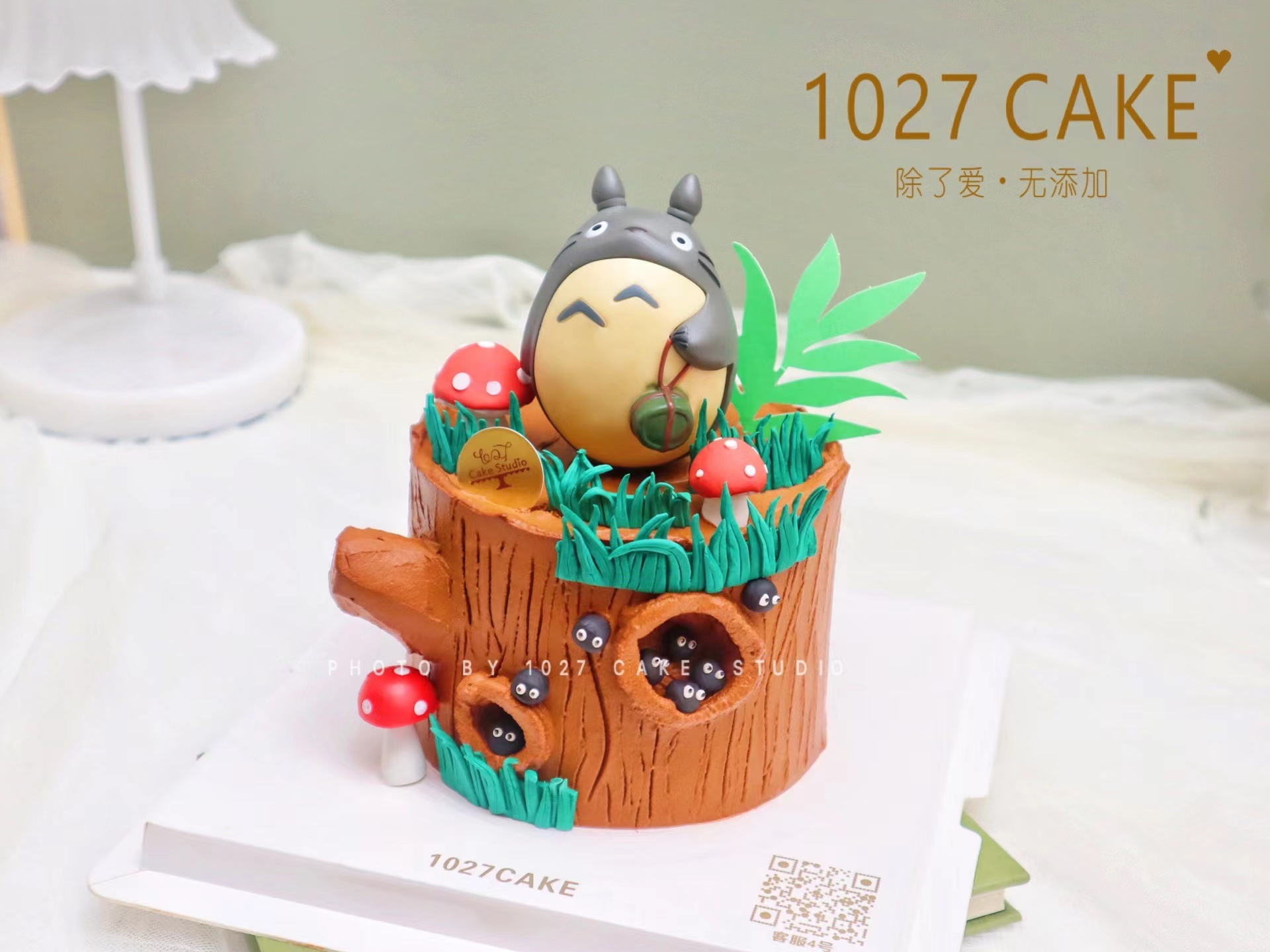 1027CAKE | 龙猫主题 宫崎骏 翻糖装饰 树桩蛋糕