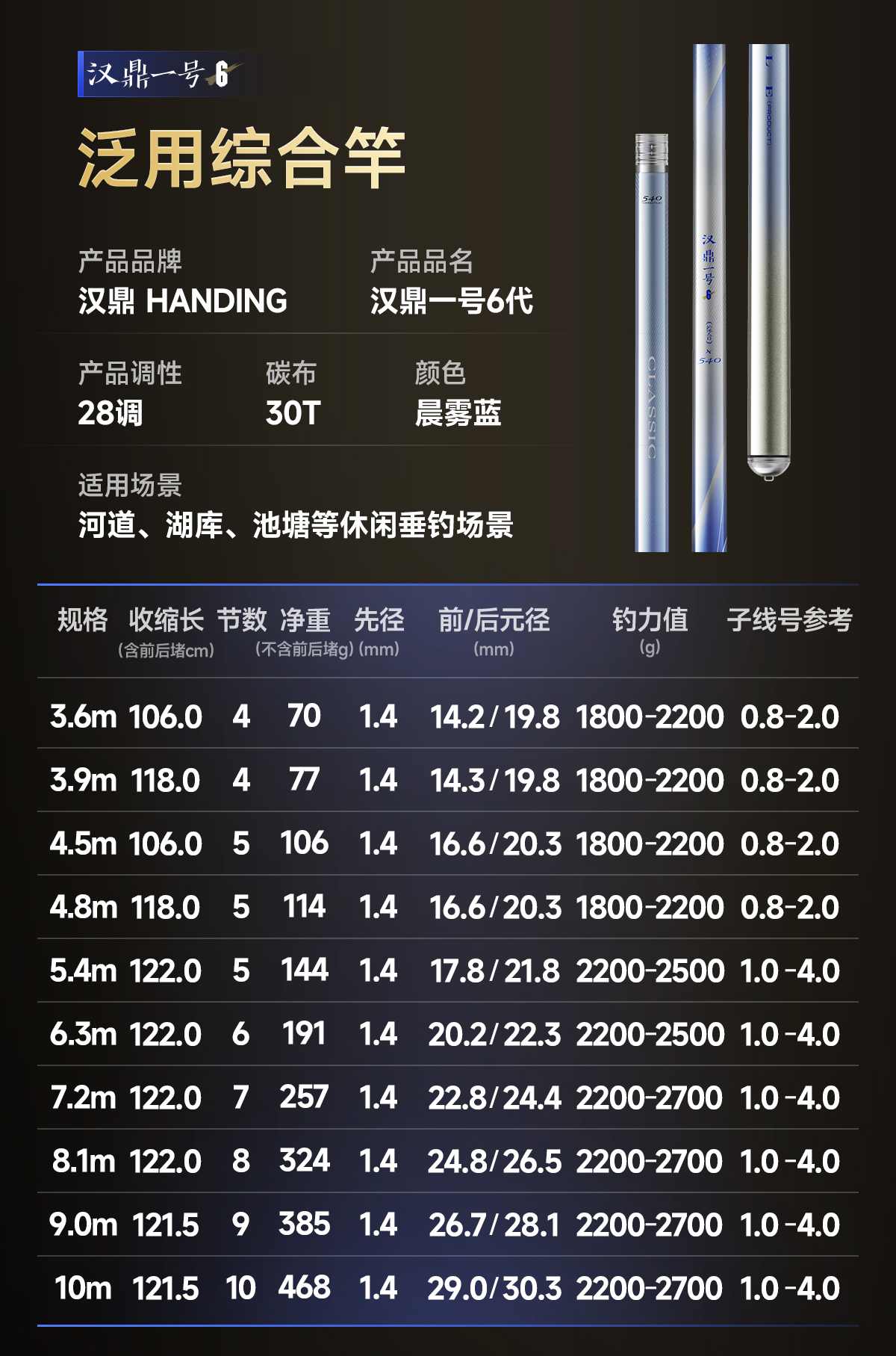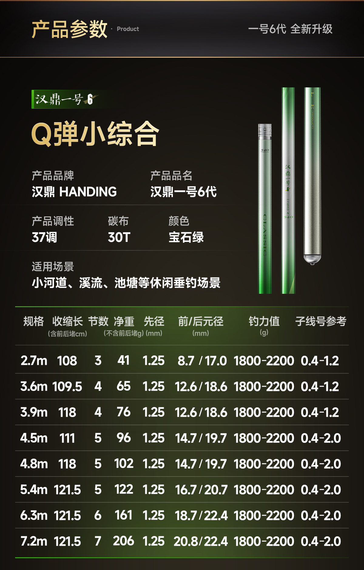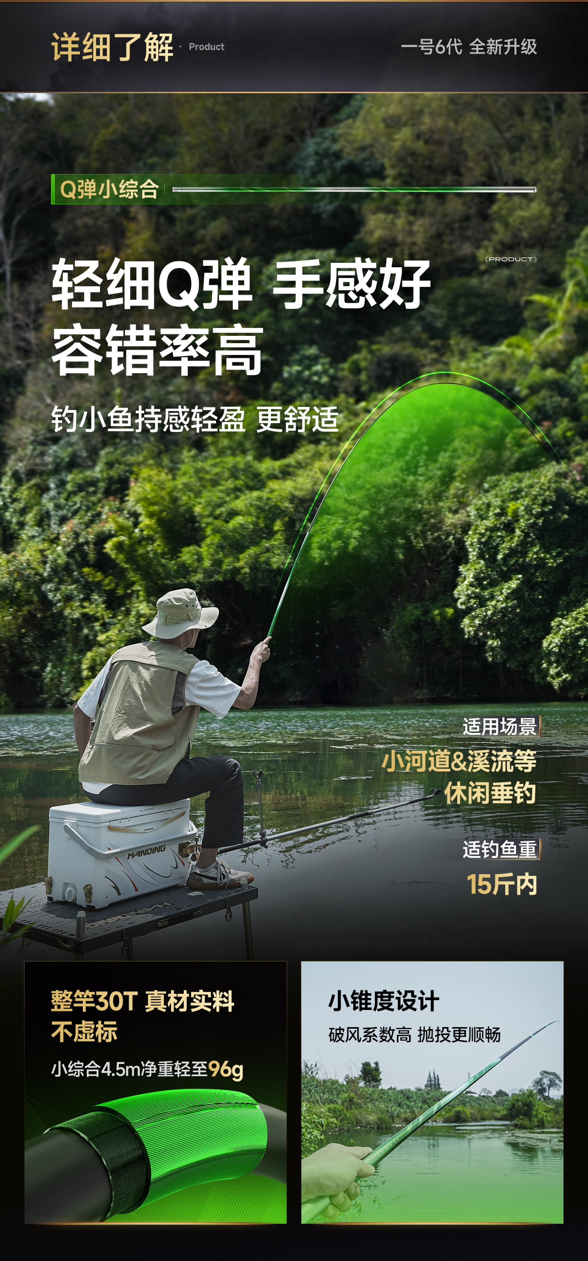 汉鼎一号6代鱼竿鱼杆手竿钓鱼竿手杆鲫鱼竿小综合竿渔具品牌碳素