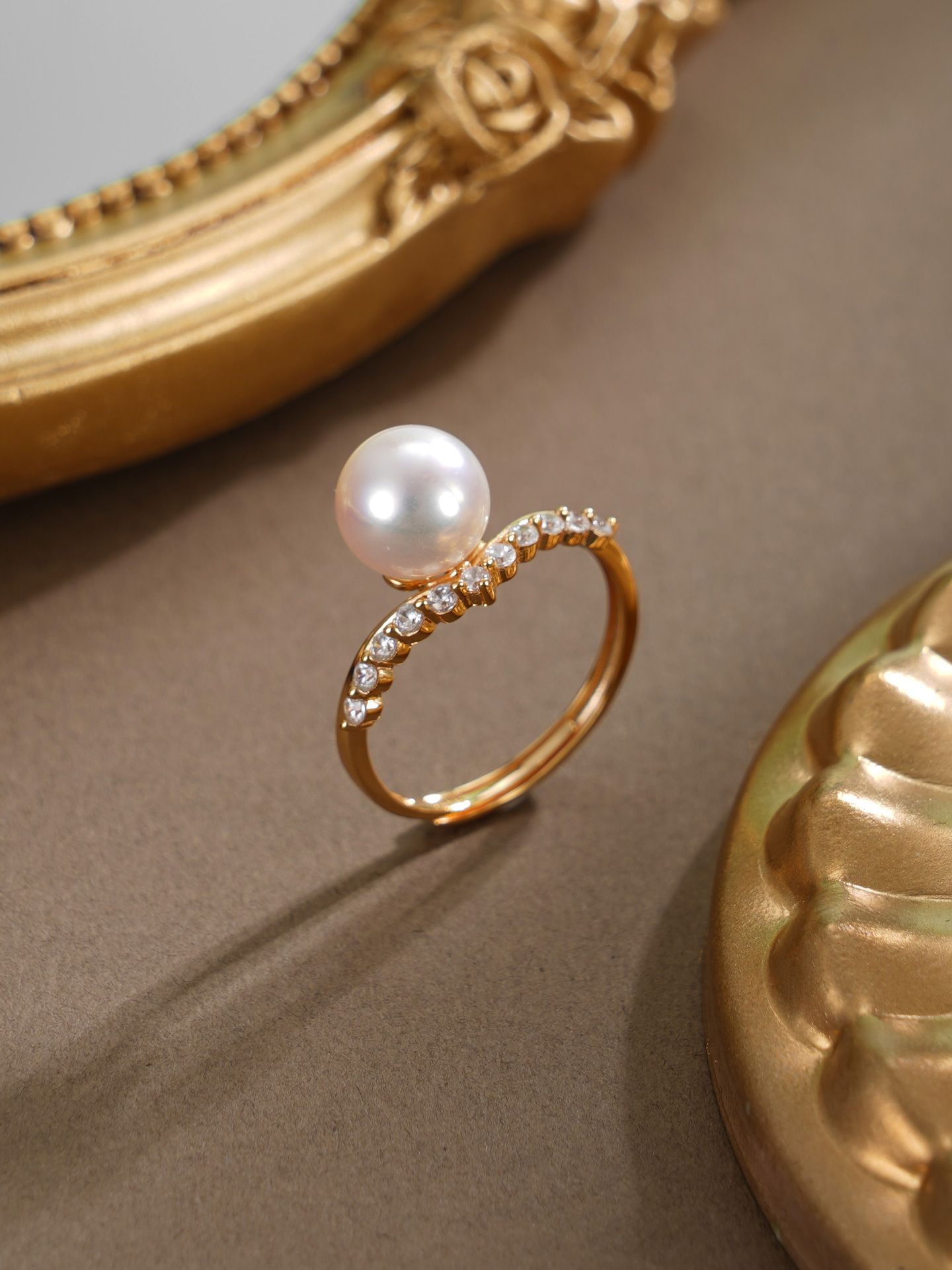 子佩集【曦光莹华】银S925珍珠戒指【HJYJZ004】8mm珠镀金V字2512