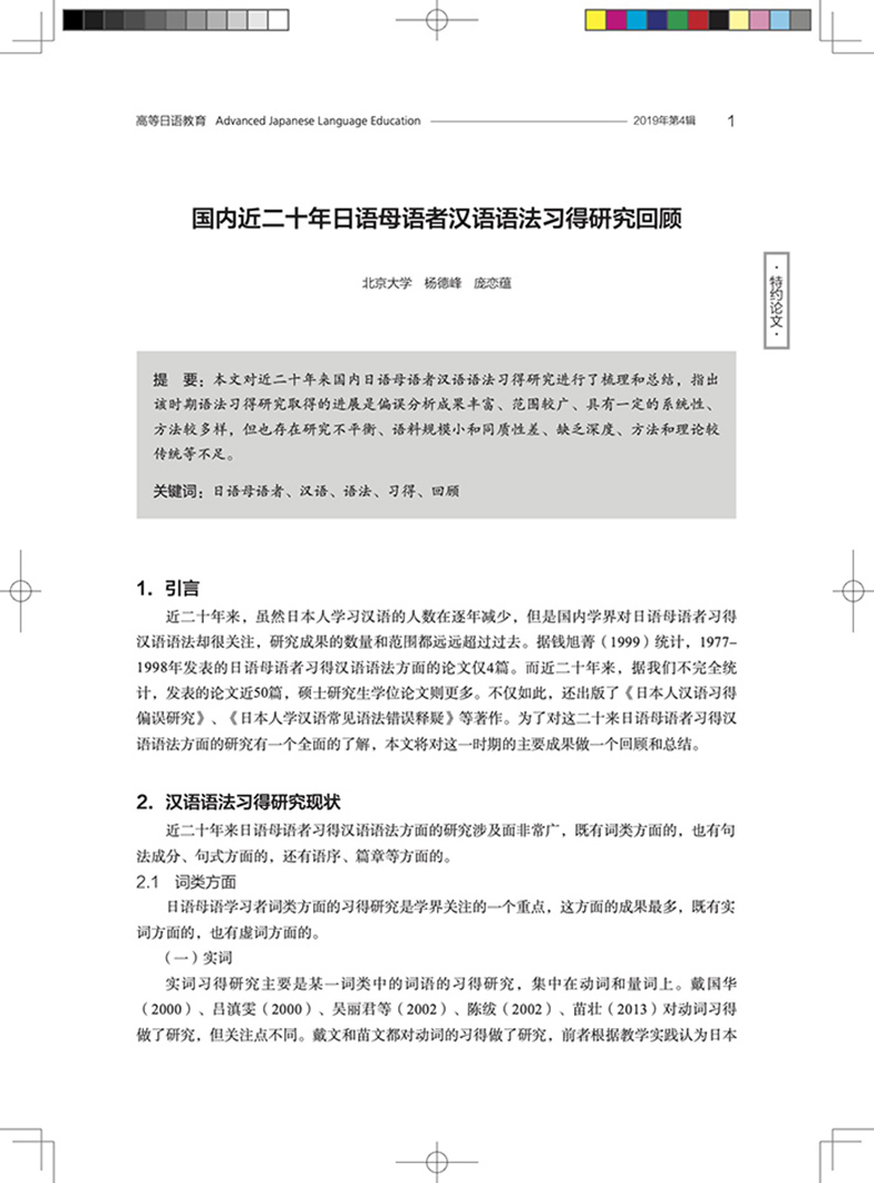 国内近二十年日语母语者汉语语法习得研究回顾…………………… 杨德峰、庞恋蕴 001