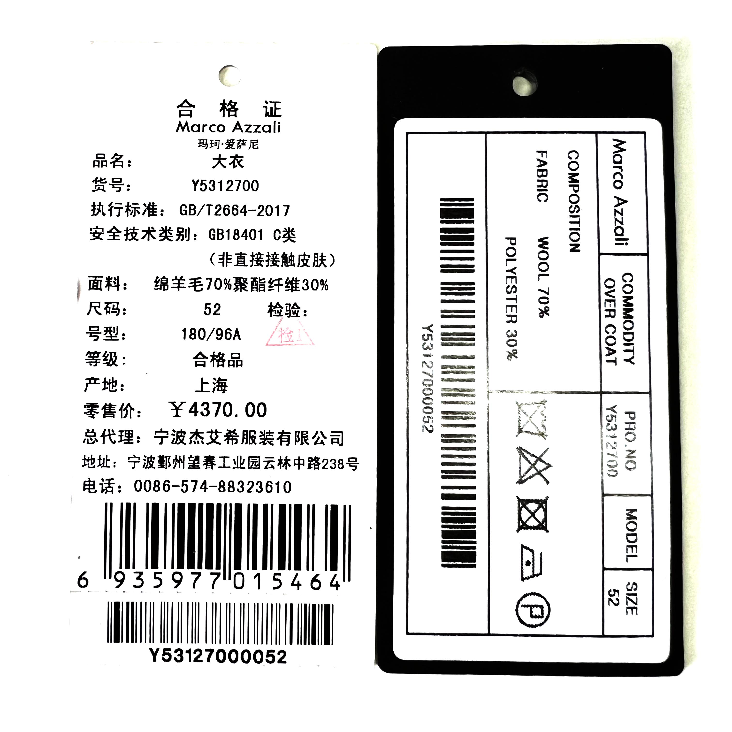 Marco Azzali 墨绿西装领大衣 Y5312700