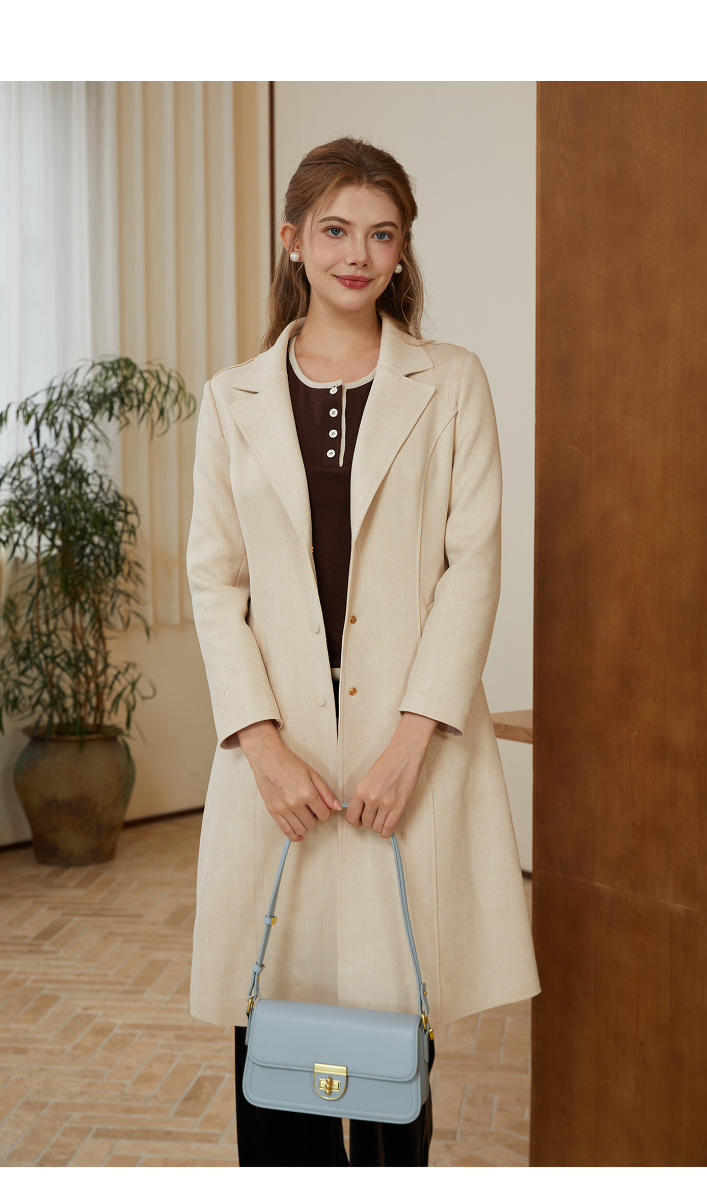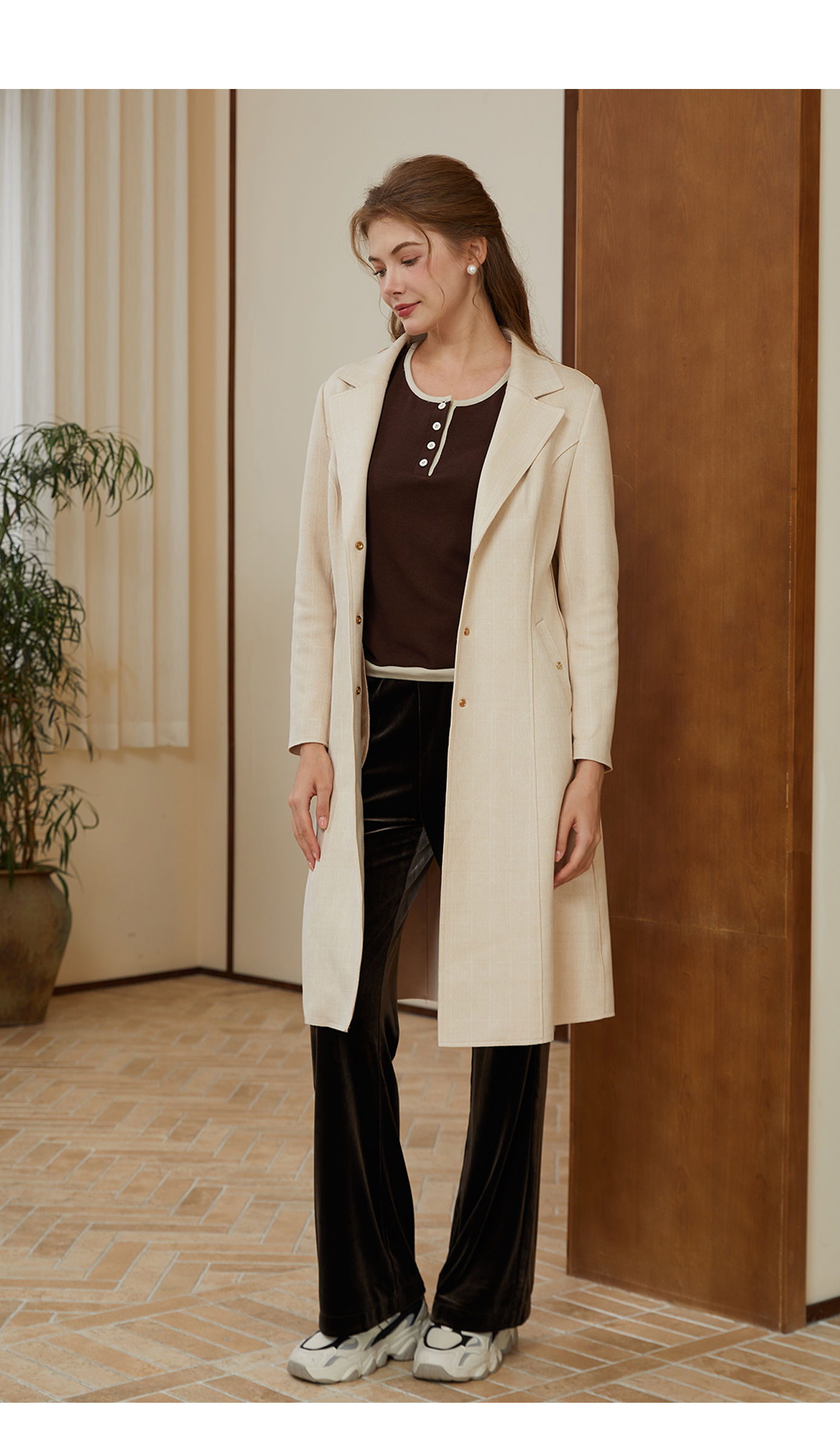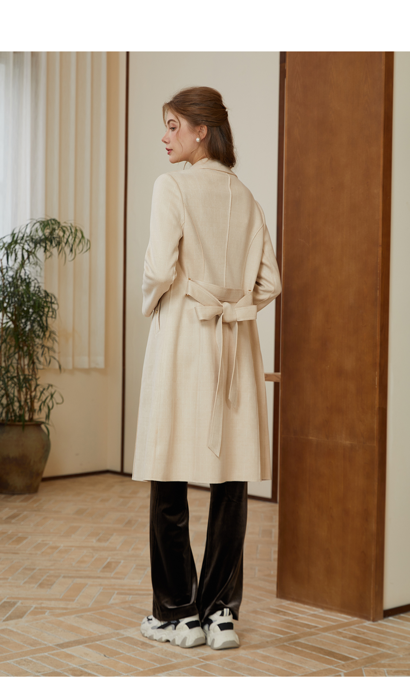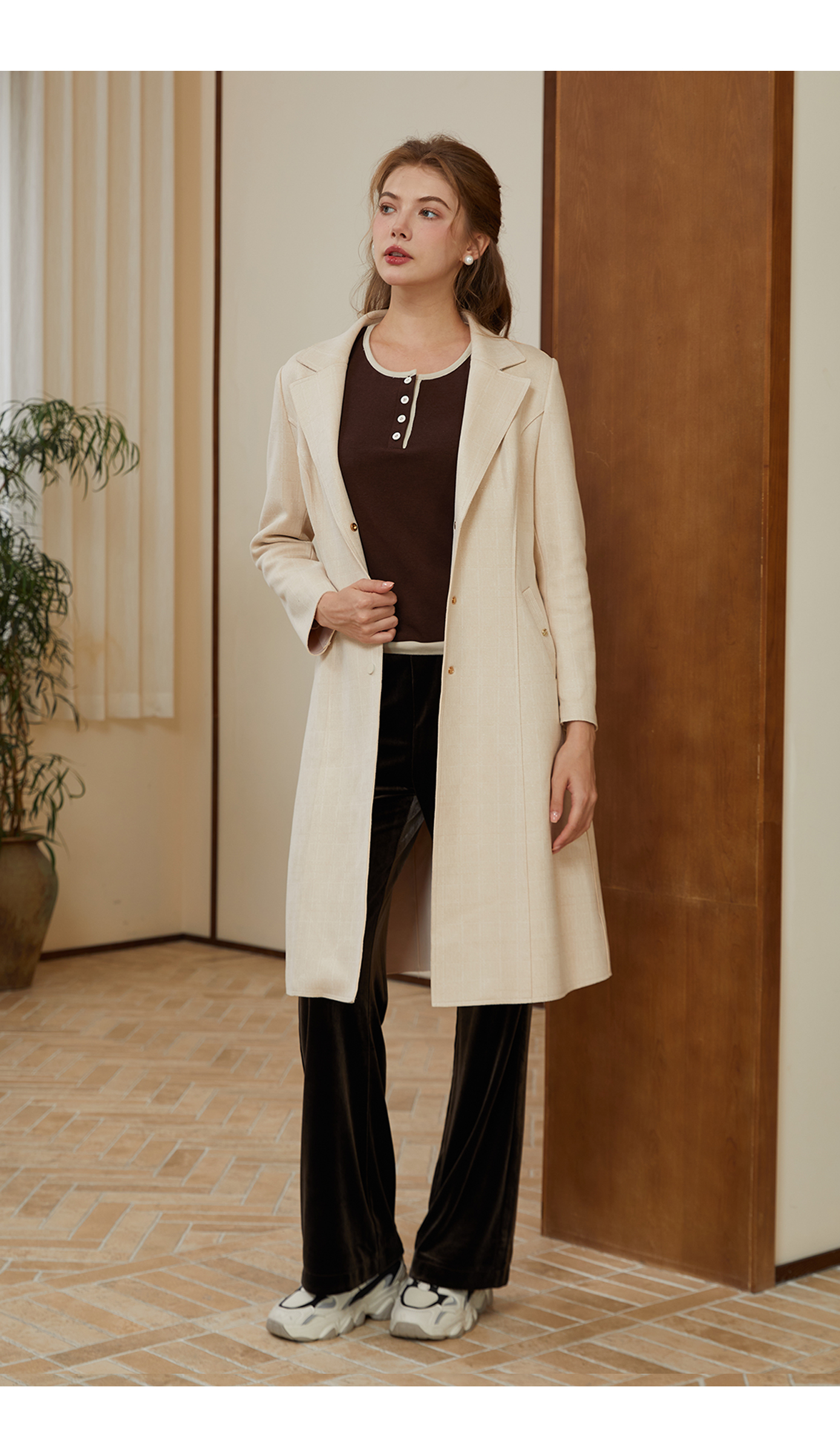 司歌麂皮绒单排扣翻领风衣弹力中长款R921029X
