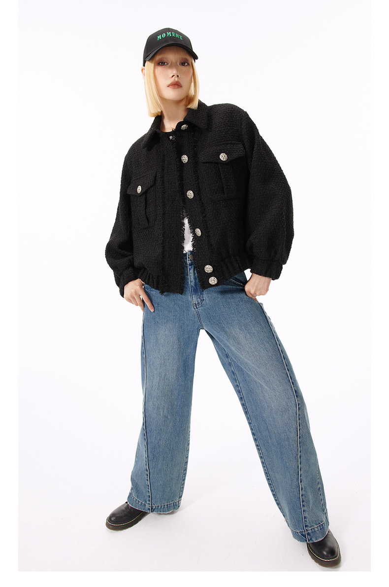 【积分换购不退货】【商场同款】诗凡黎灰色高腰直筒休闲裤2024夏新款长裤3F4350731