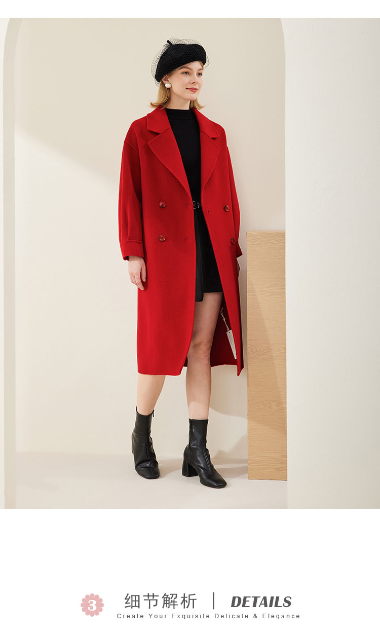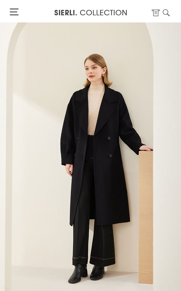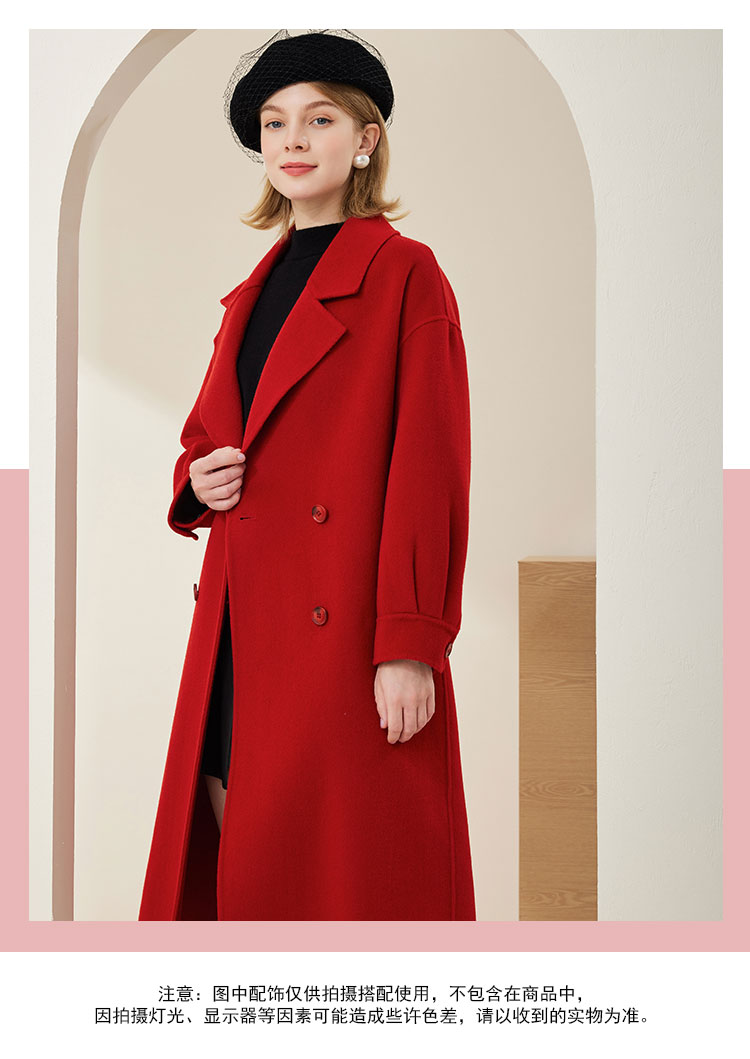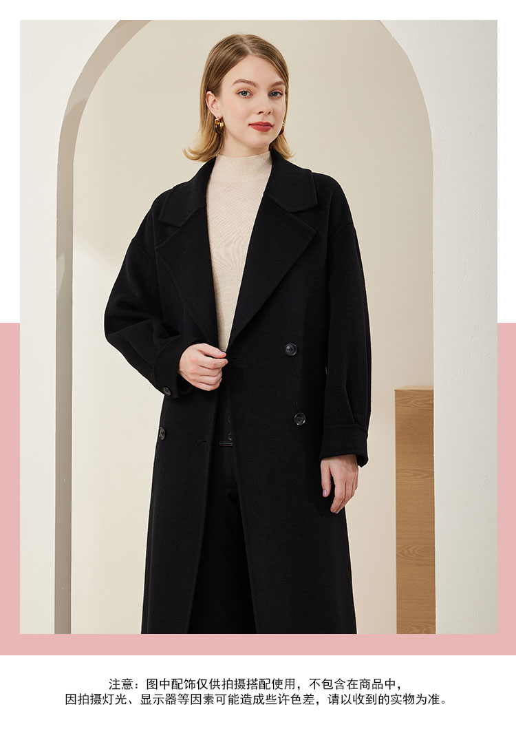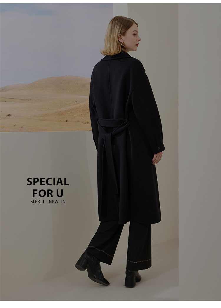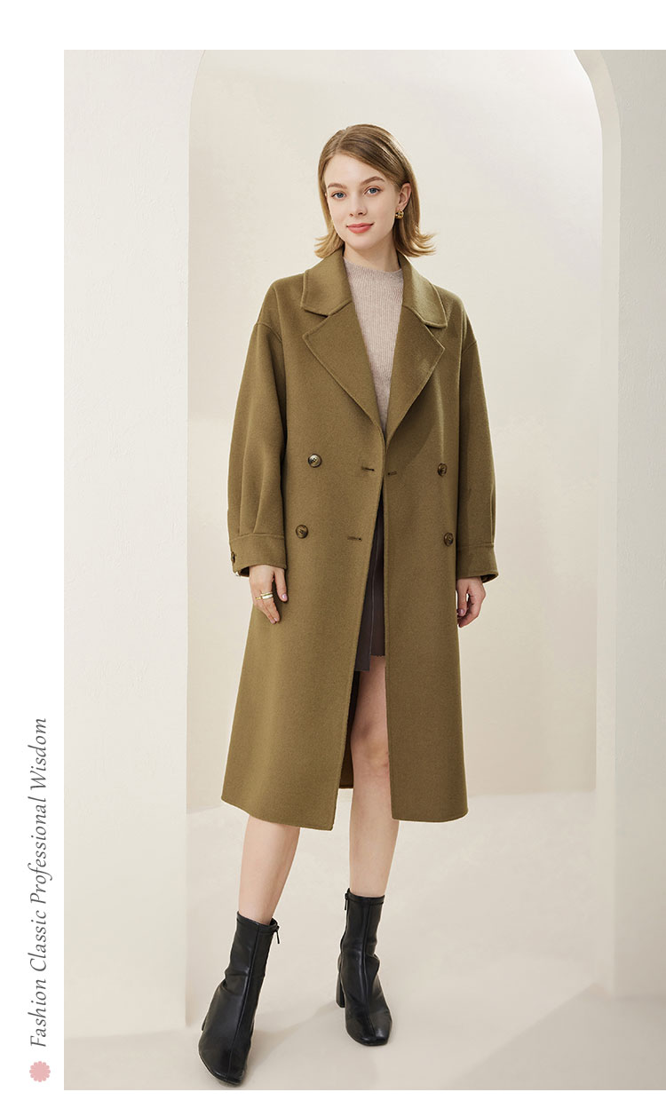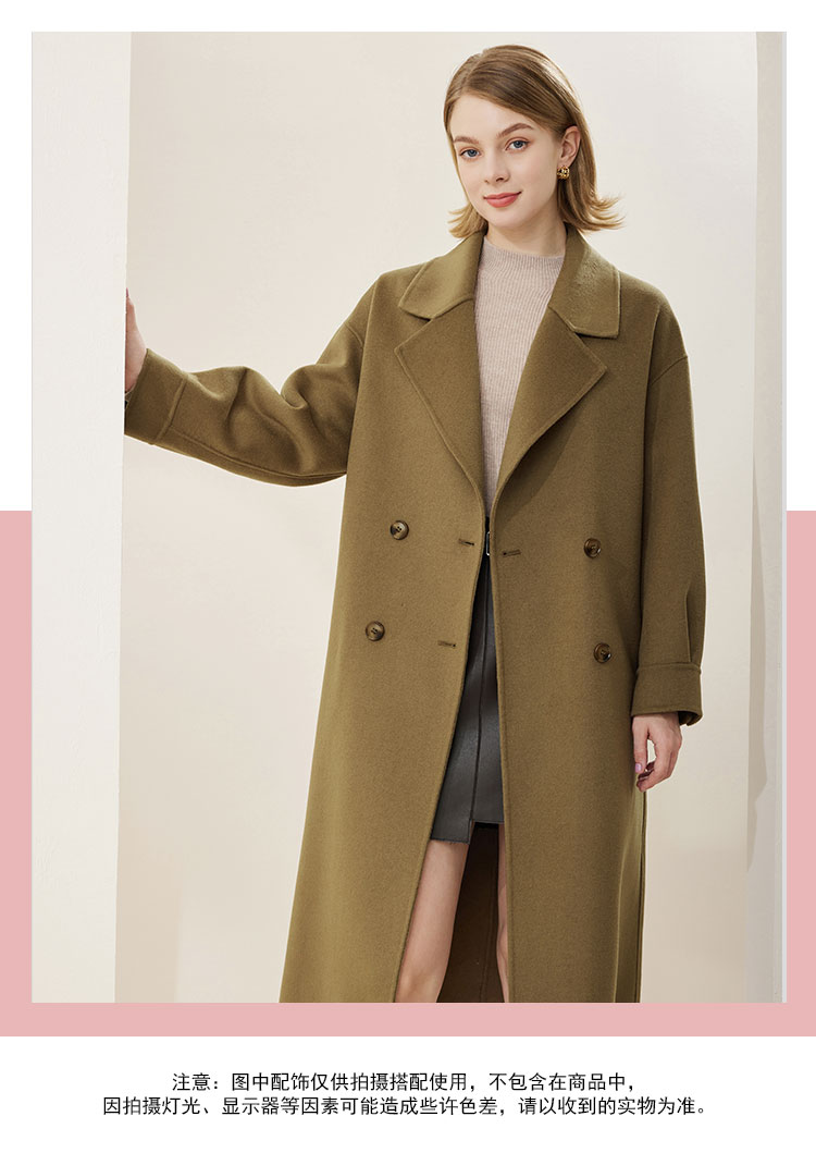 MH9D9斯尔丽瑟俪·2022年冬上新商场同款简约宽松双排扣袖口褶皱大衣