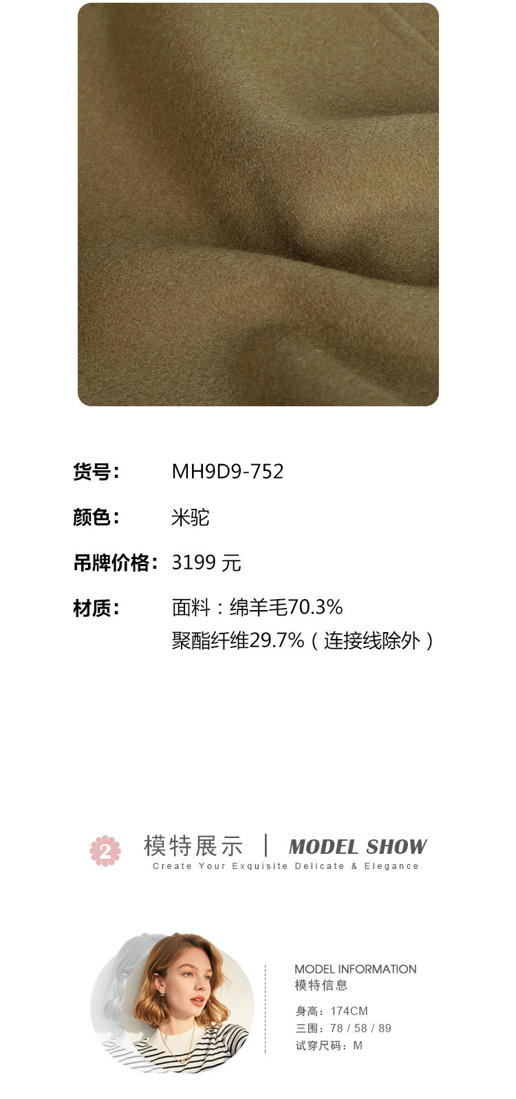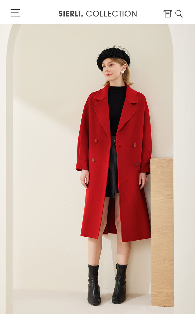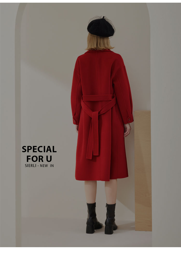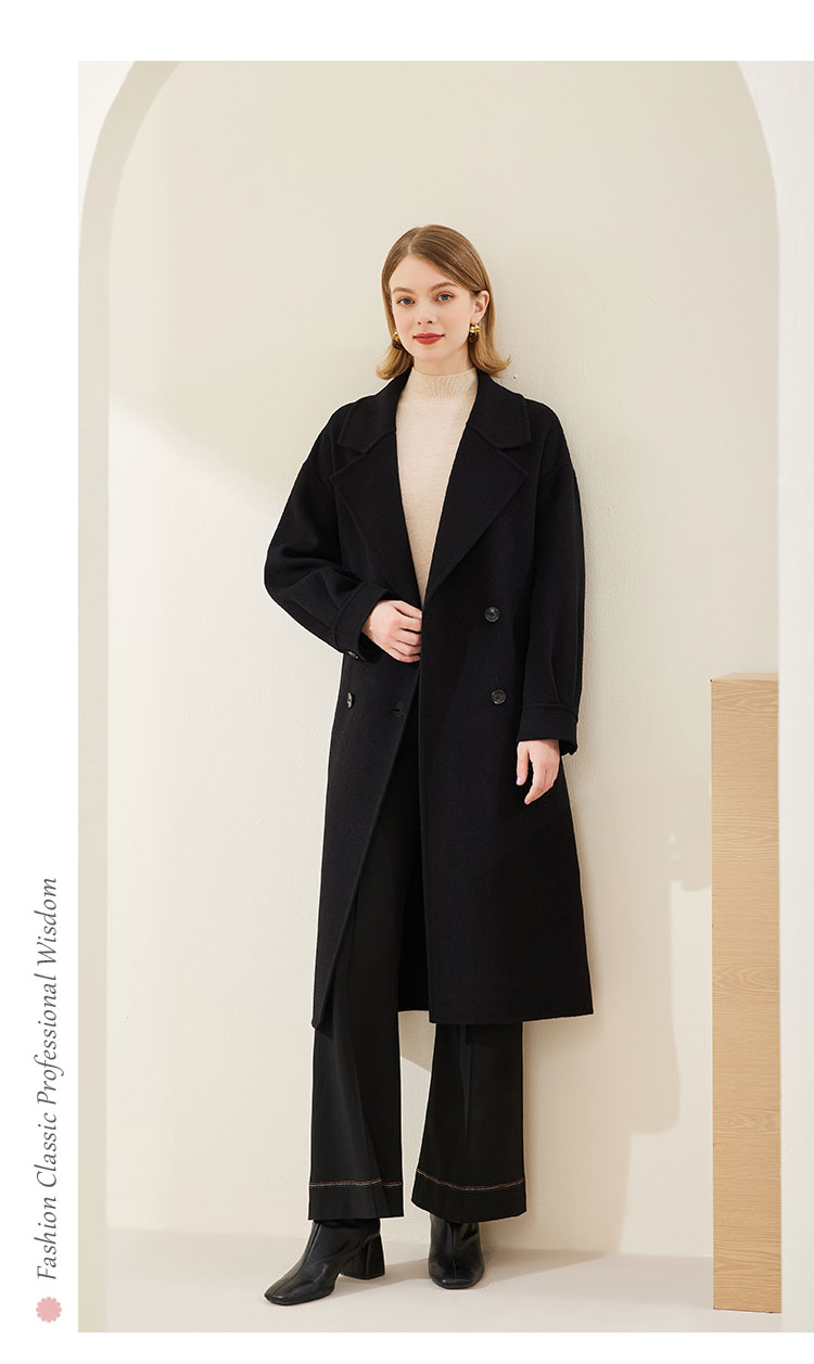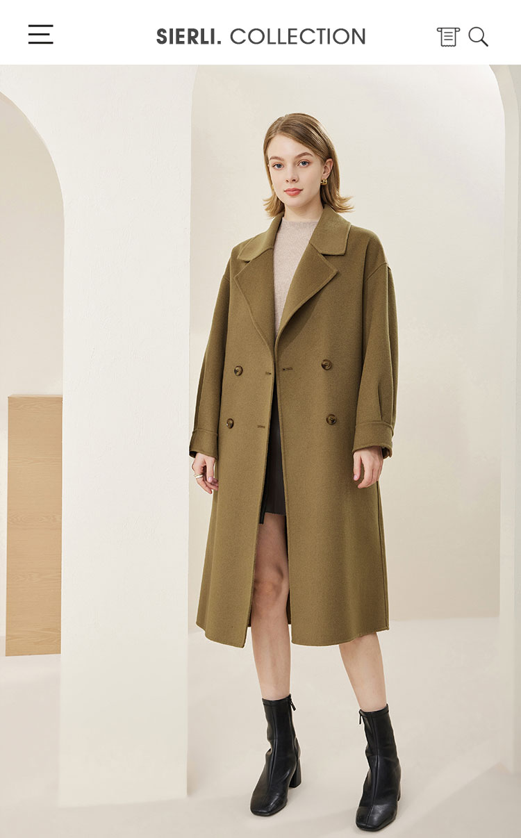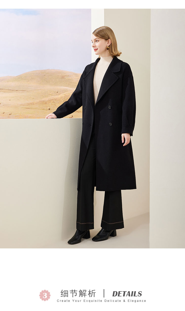 MH9D9斯尔丽瑟俪·2022年冬上新商场同款简约宽松双排扣袖口褶皱大衣