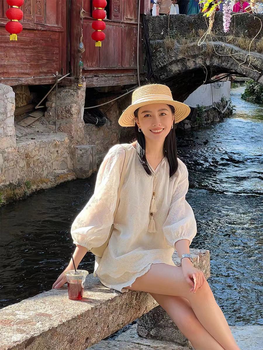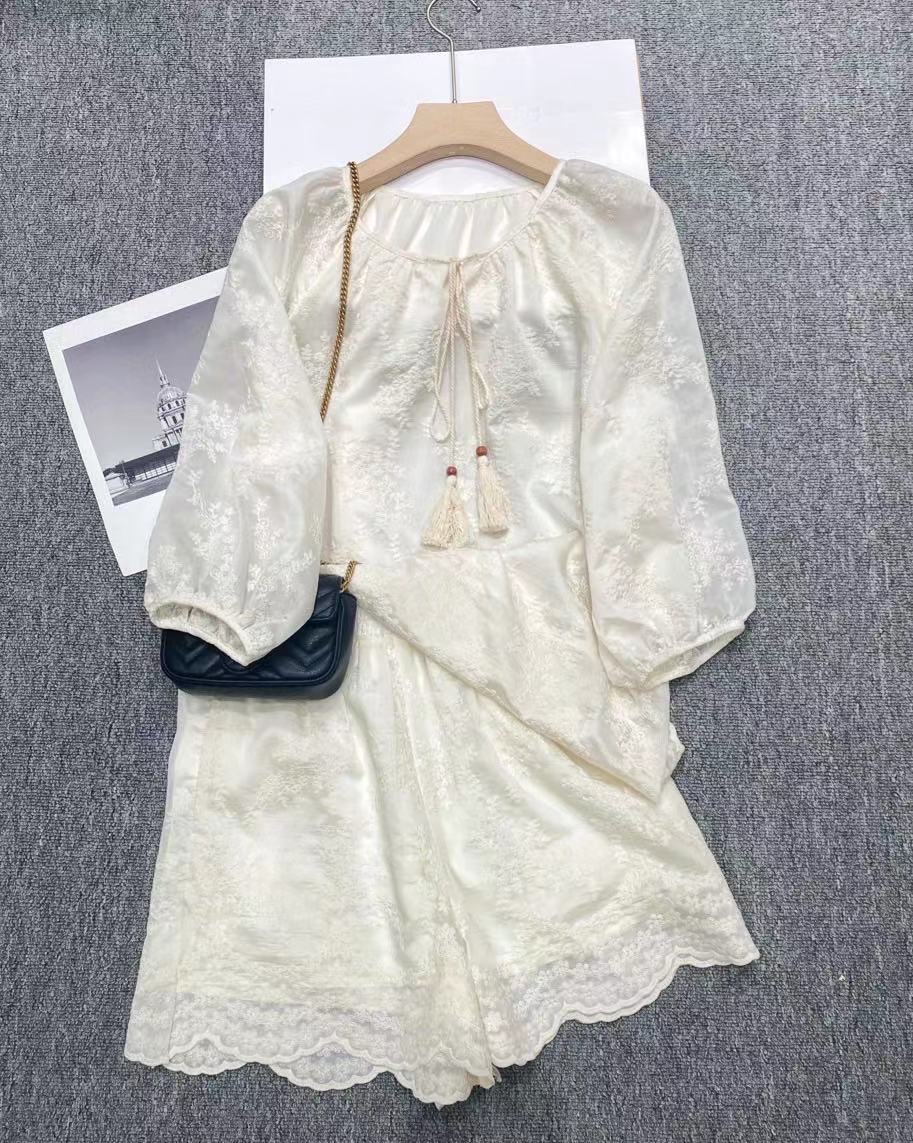 夏天即将来临,整个时尚圈走进了开满花的世界。浪漫少女的同时,还不失时尚感。奢华而复古,气质而优雅。上衣微宽松的版型,包容度很强。插肩袖设计,优化肩部线条。袖子做的是七分灯笼袖,遮手臂肉肉