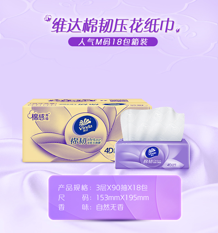 【到手54件】维达棉韧M码抽纸18包/箱*3箱+有芯卷纸120节27卷/箱