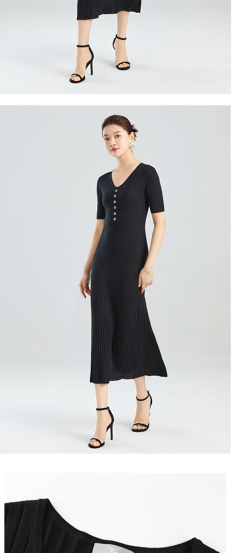 东黎 • 丝绒女士夏季V领带扣显瘦连衣裙 3219