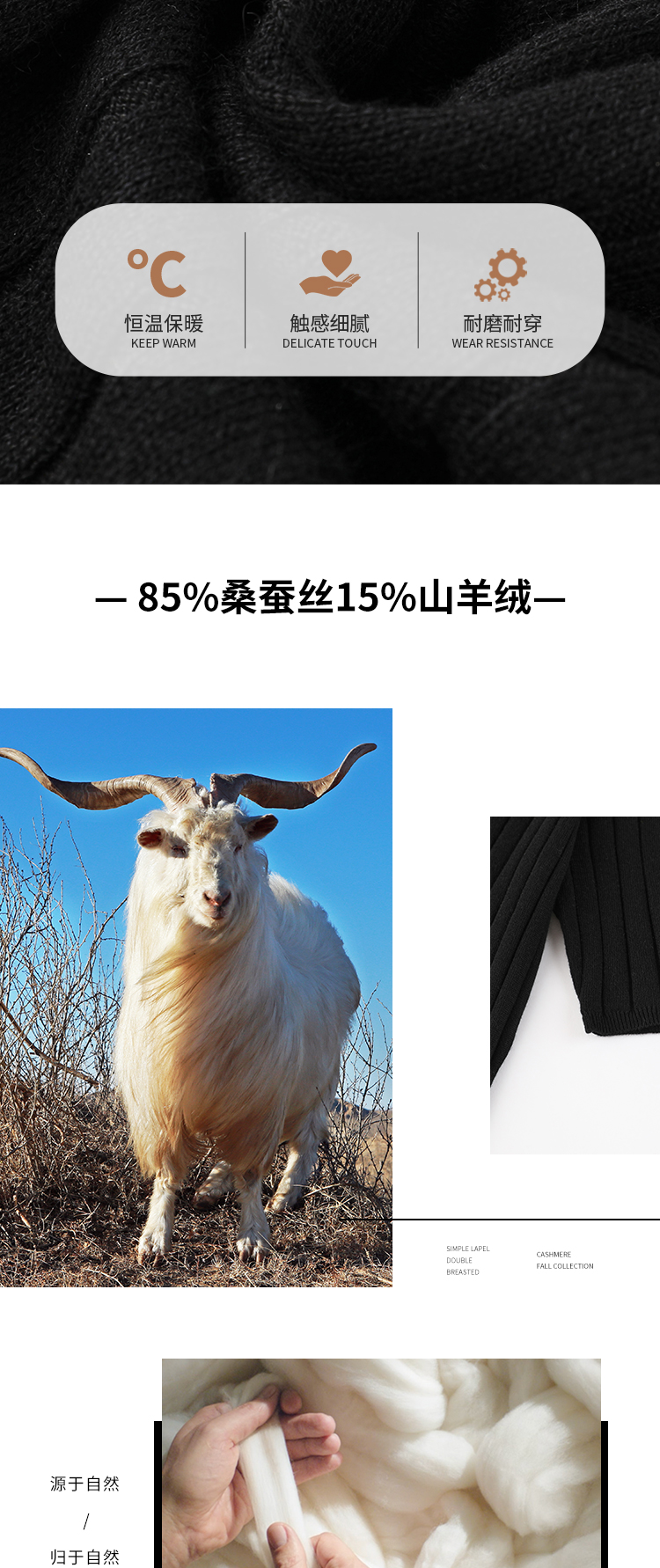 东黎羊绒是赤峰东荣集团自主品牌,自有牧场/羊绒制品全产业链优势,实现了羊绒从“牧场”到“商场”的华丽转变。
