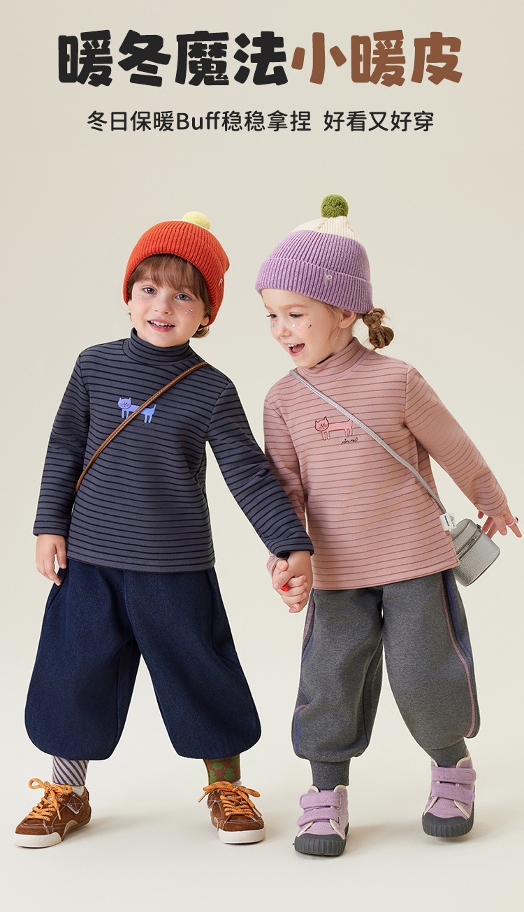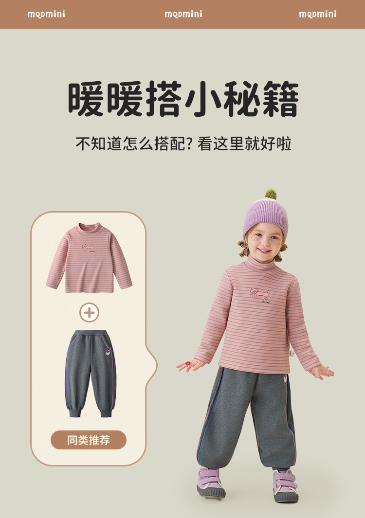 【5A抑菌 加绒】【90-140】【MQDmini】男女童保暖加绒半高领打底衫
