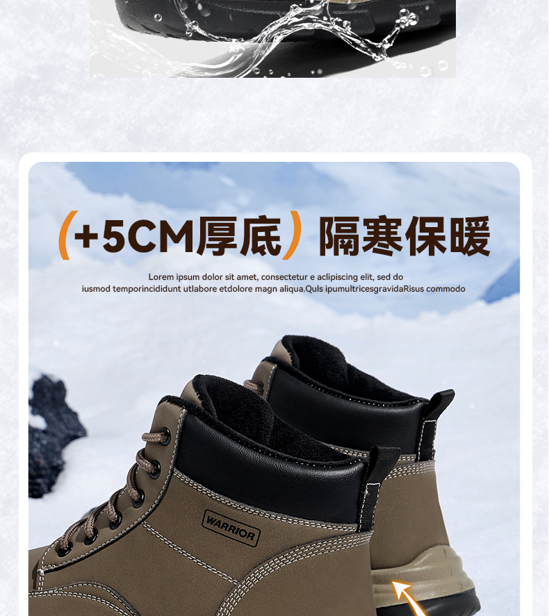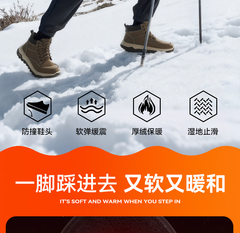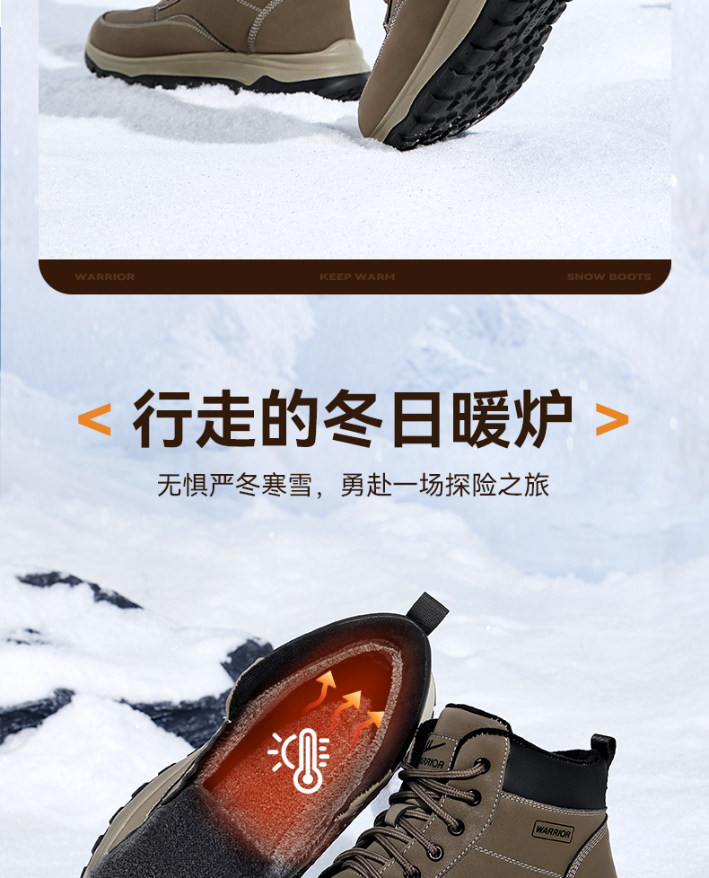 回力男士雪地靴冬季新款加绒加厚保暖马丁靴防泼水止滑东北大棉鞋