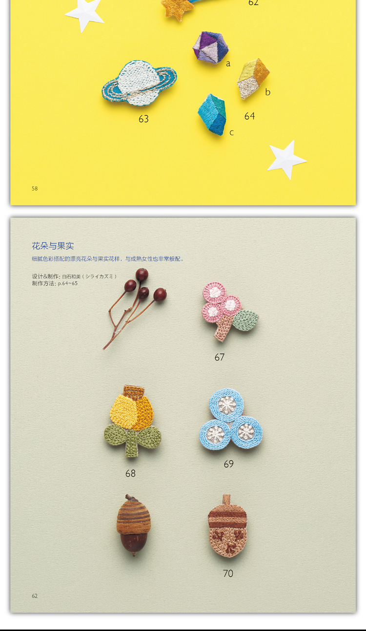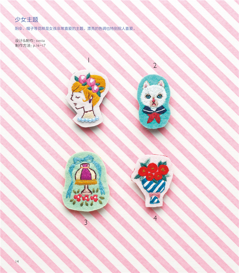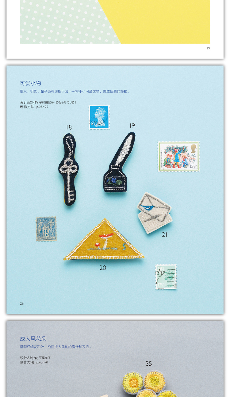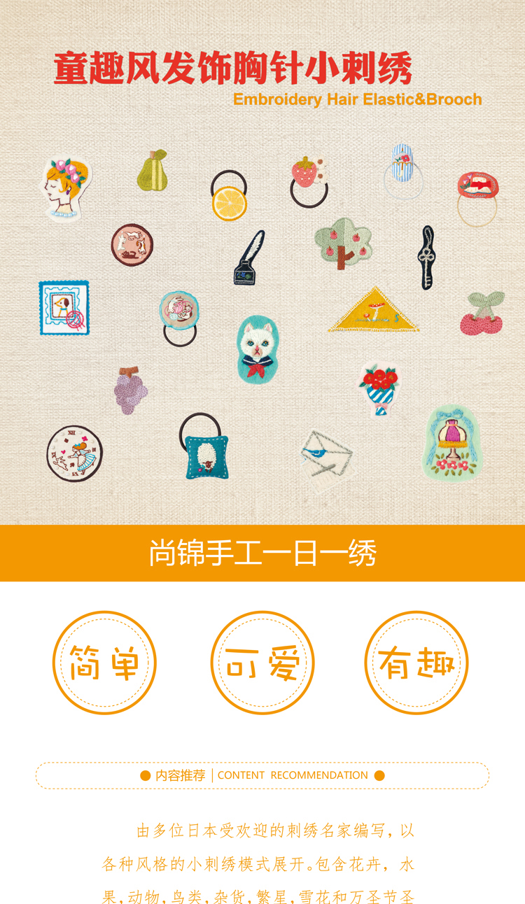 尚锦手工日本刺绣书籍 童趣风发饰胸针小刺绣 一日一绣系列丛书 236清新花草小刺绣姐妹篇刺绣程入门书籍 刺绣图案书
