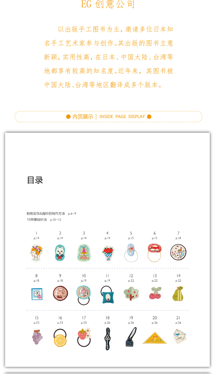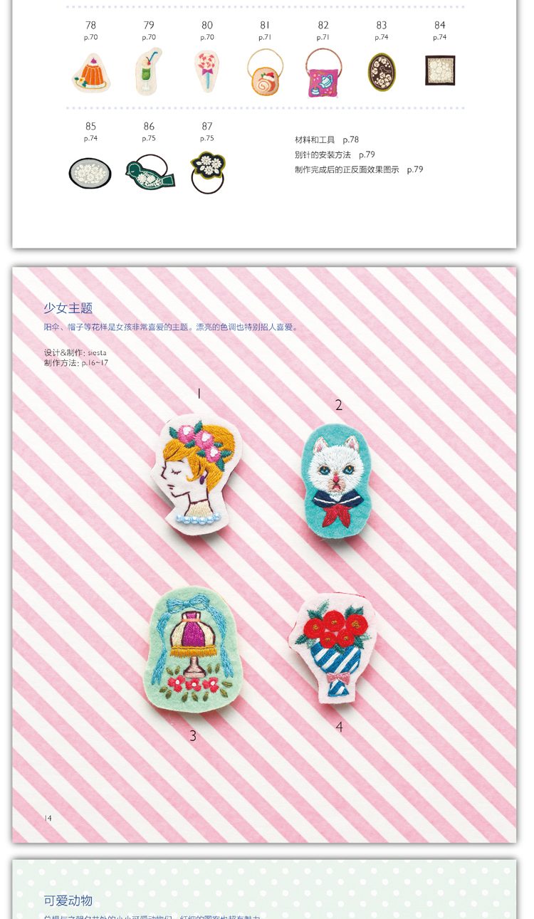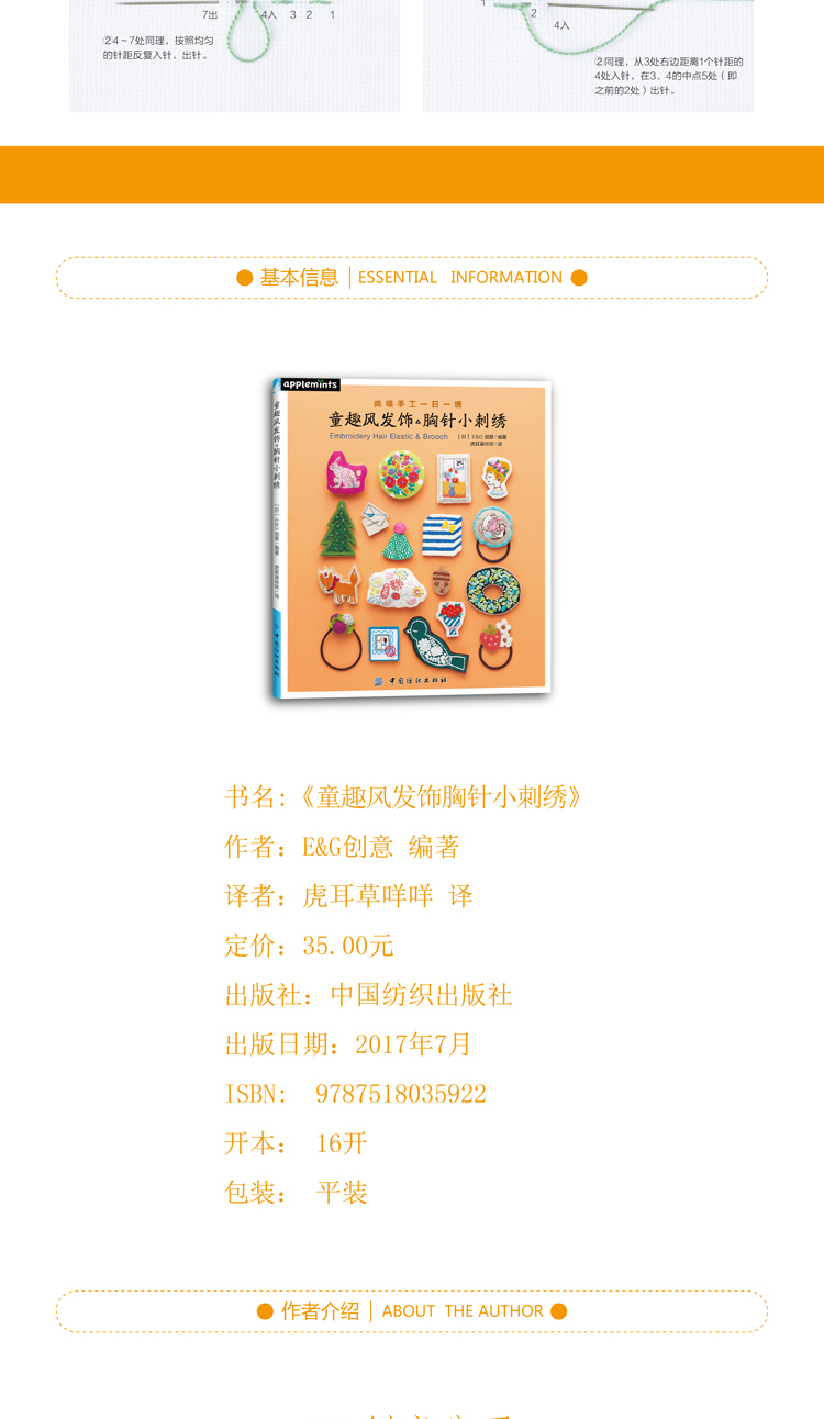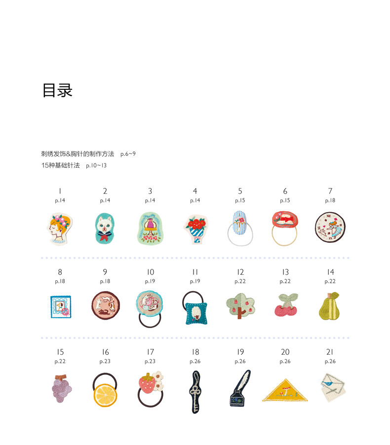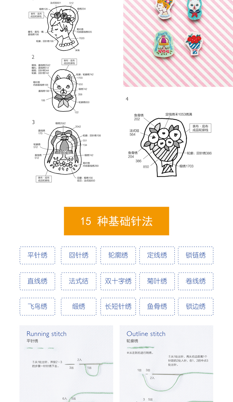 尚锦手工日本刺绣书籍 童趣风发饰胸针小刺绣 一日一绣系列丛书 236清新花草小刺绣姐妹篇刺绣程入门书籍 刺绣图案书