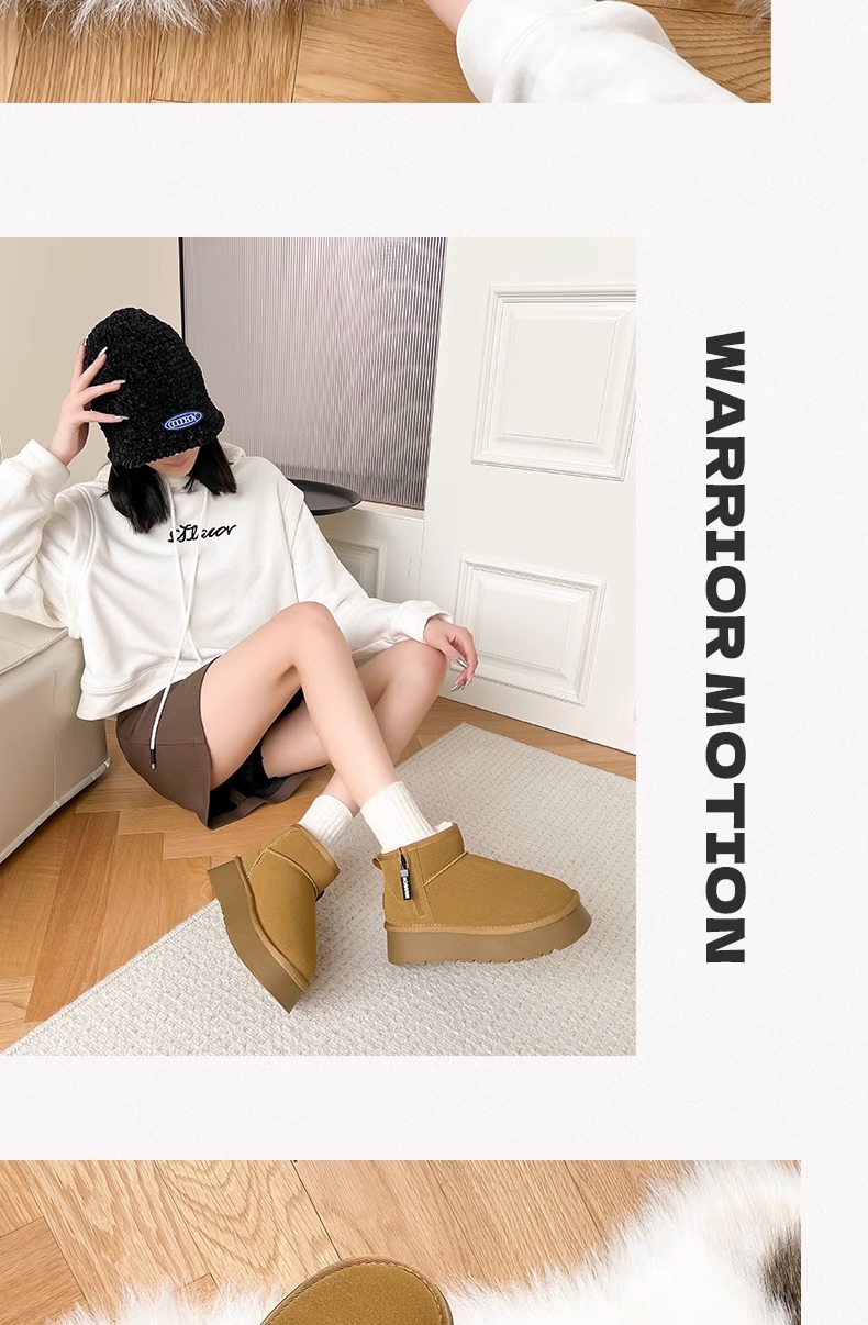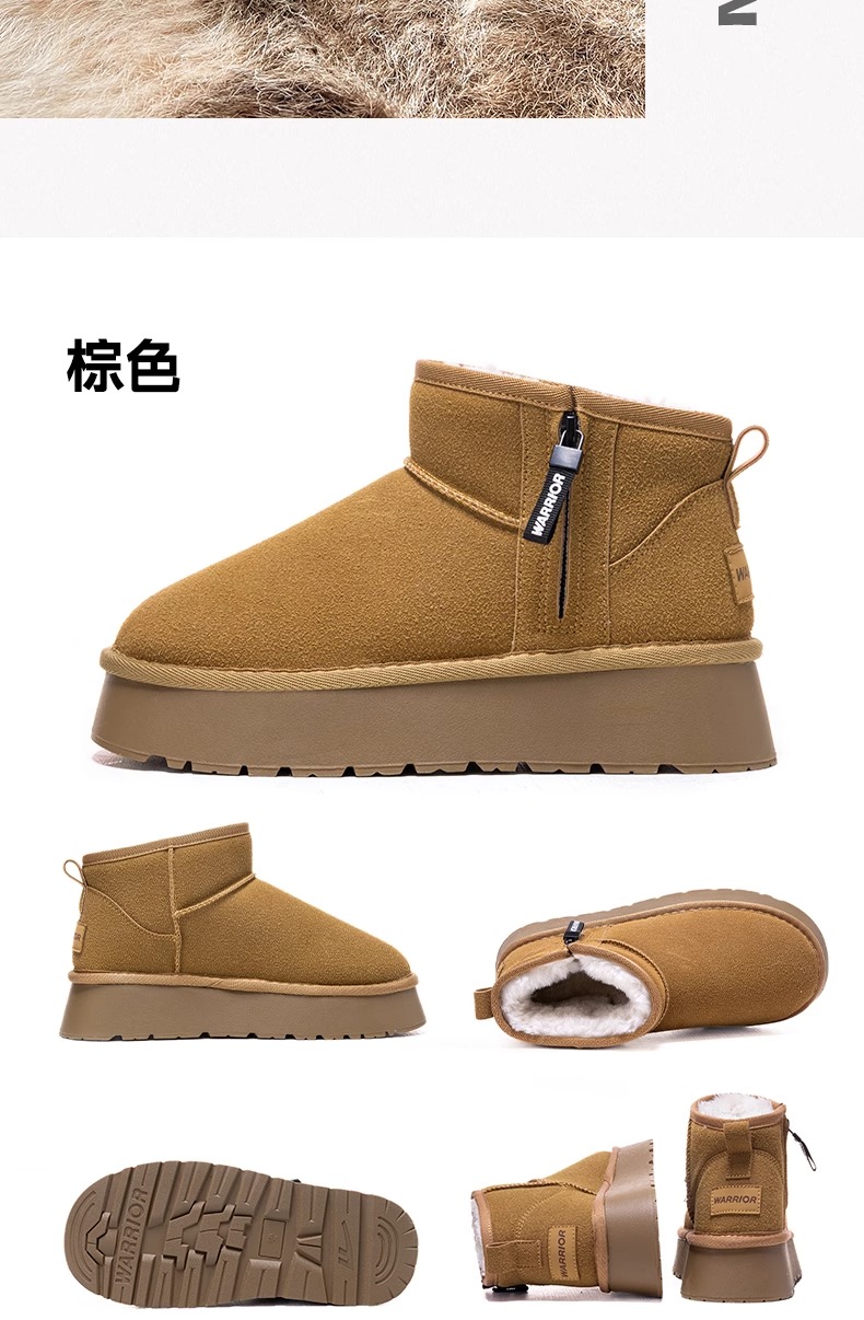 回力女鞋雪地靴冬季新款皮毛一体面包鞋子外穿加绒加厚保暖棉鞋女