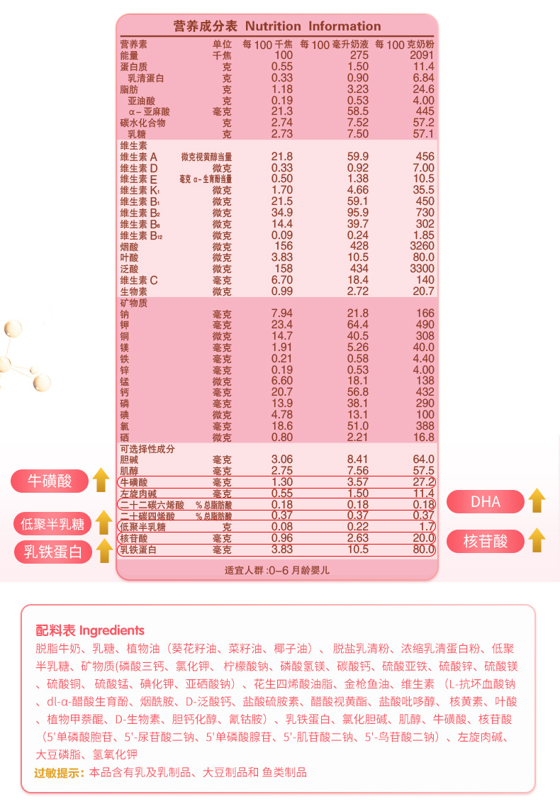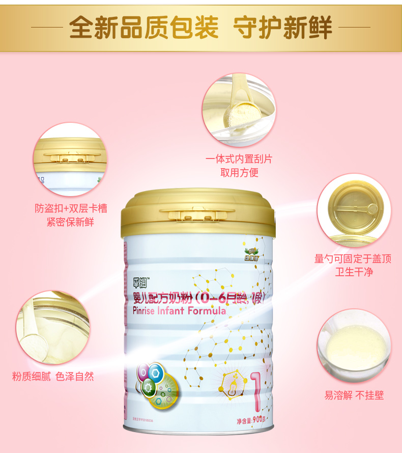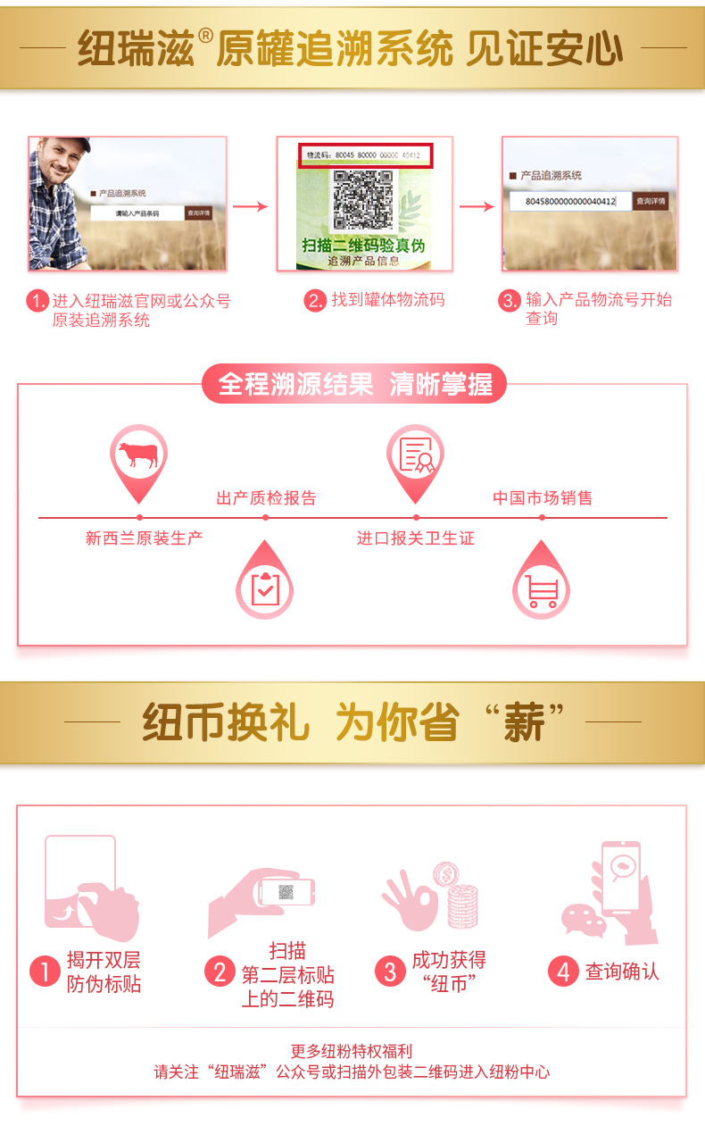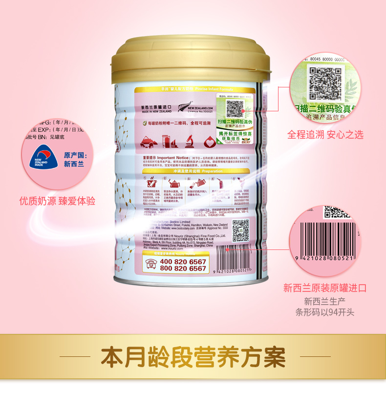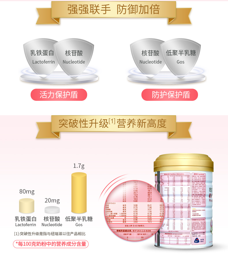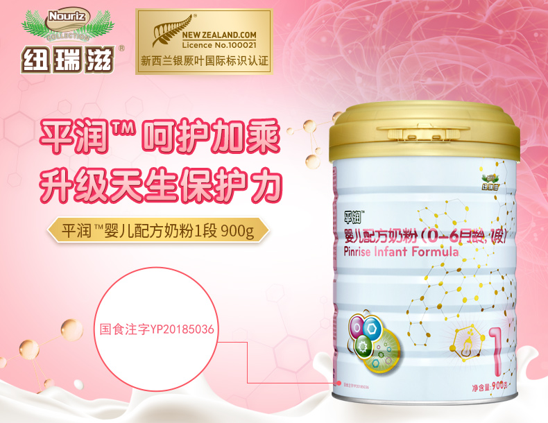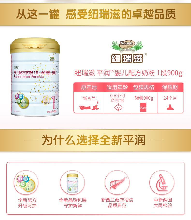 纽瑞滋婴儿配方平润奶粉1段900克*6罐(0-6个月 新西兰原罐进口)含乳铁蛋白