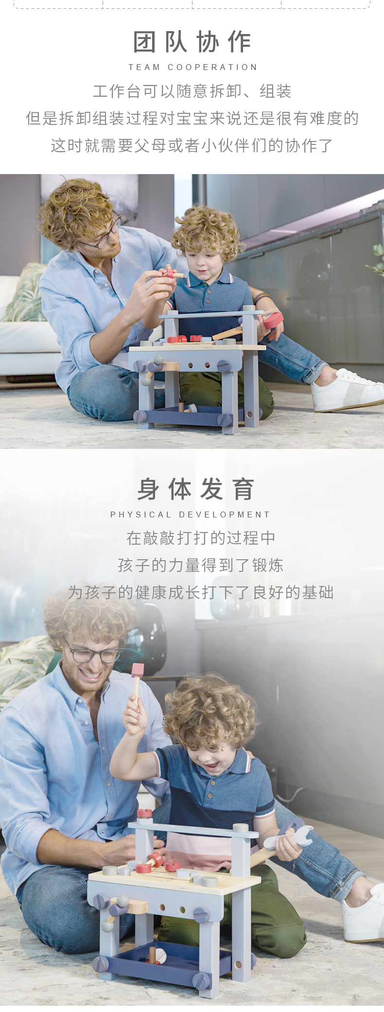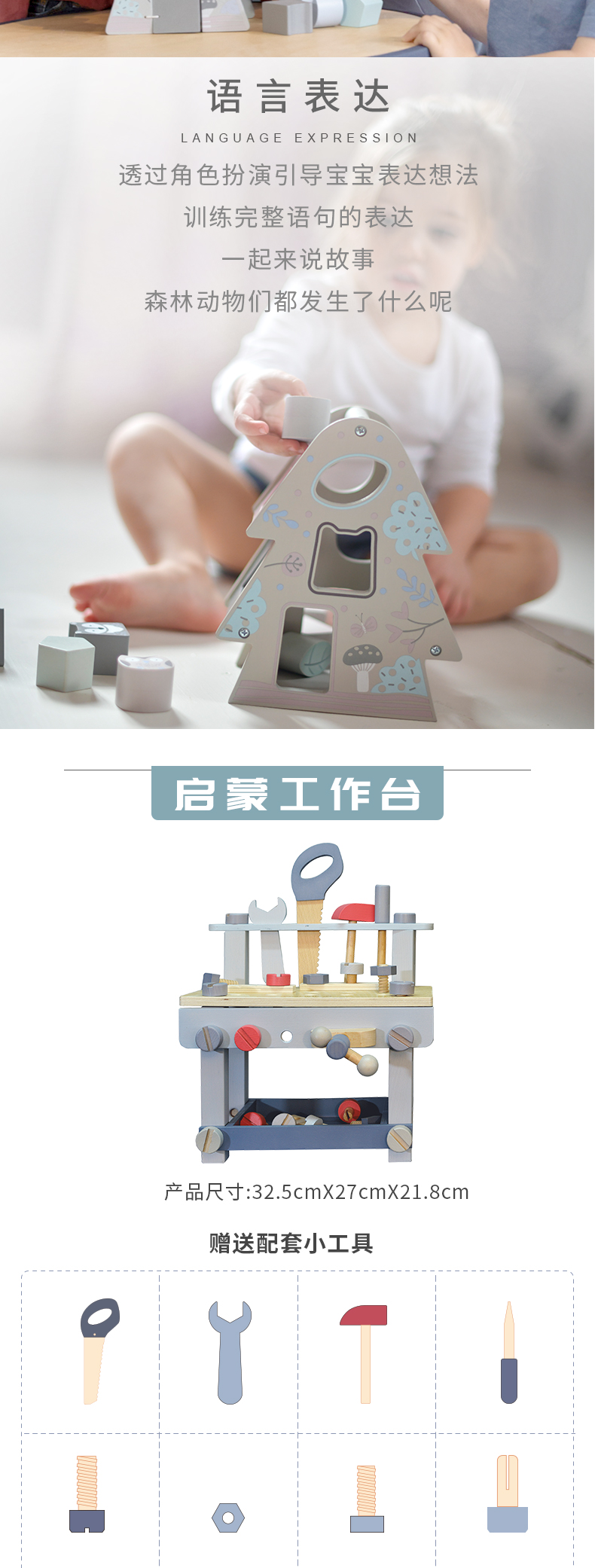 德国EverEarth工具台 木制拼装积木 男孩玩具 可组装拆卸玩具敲打
