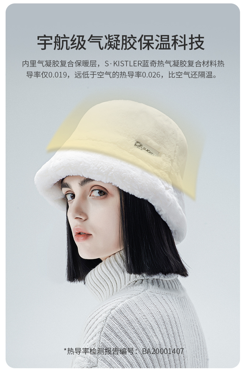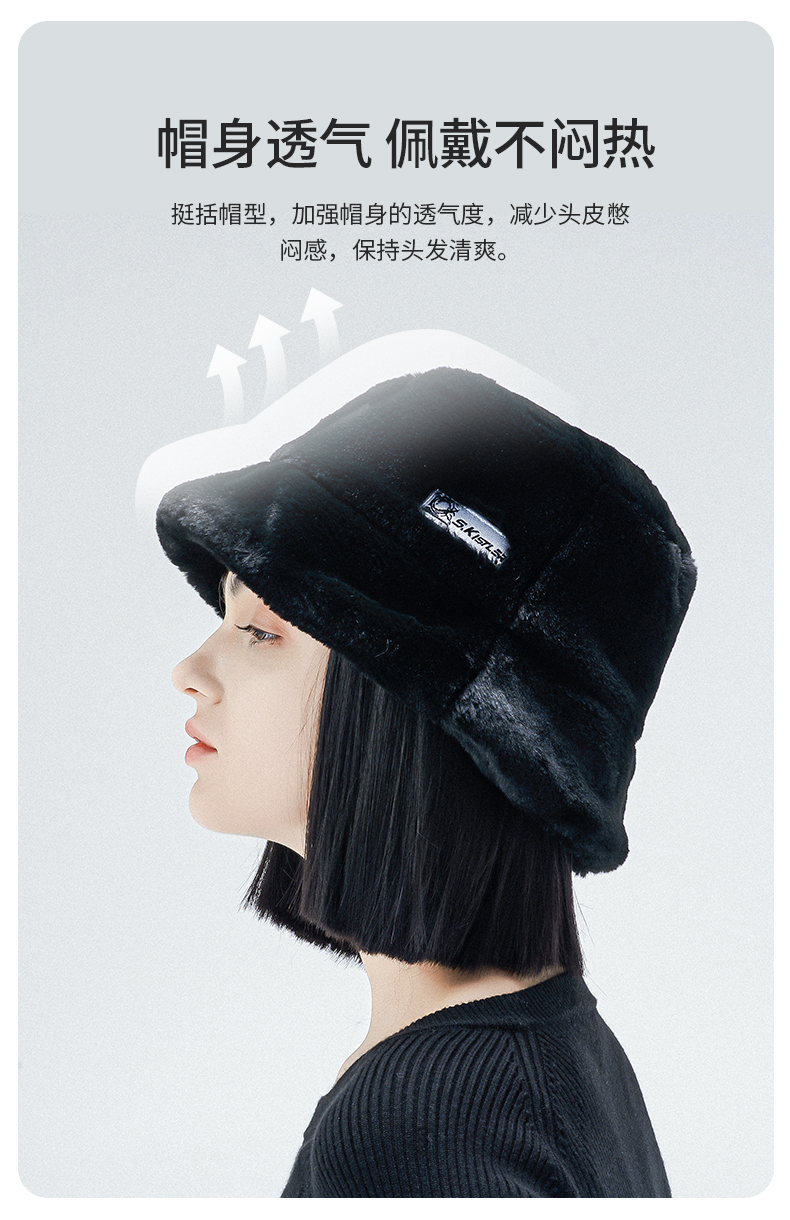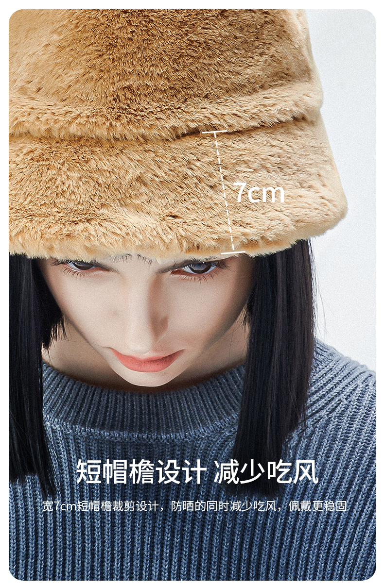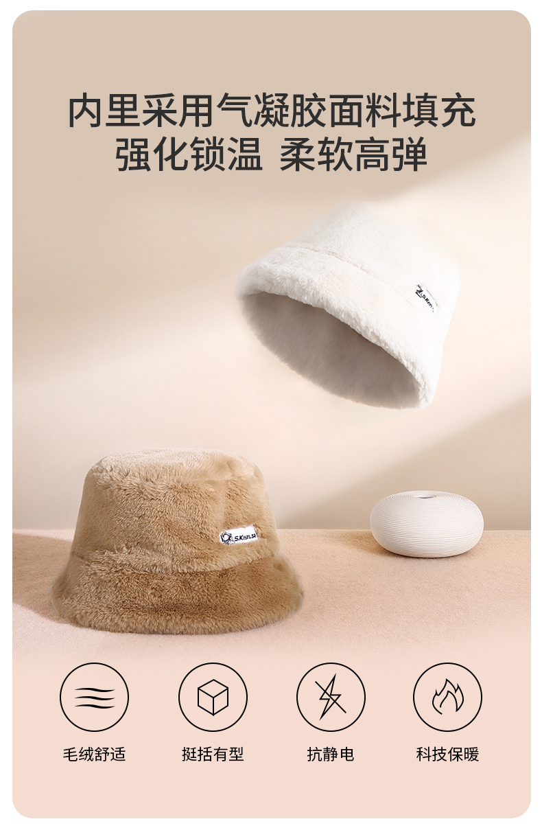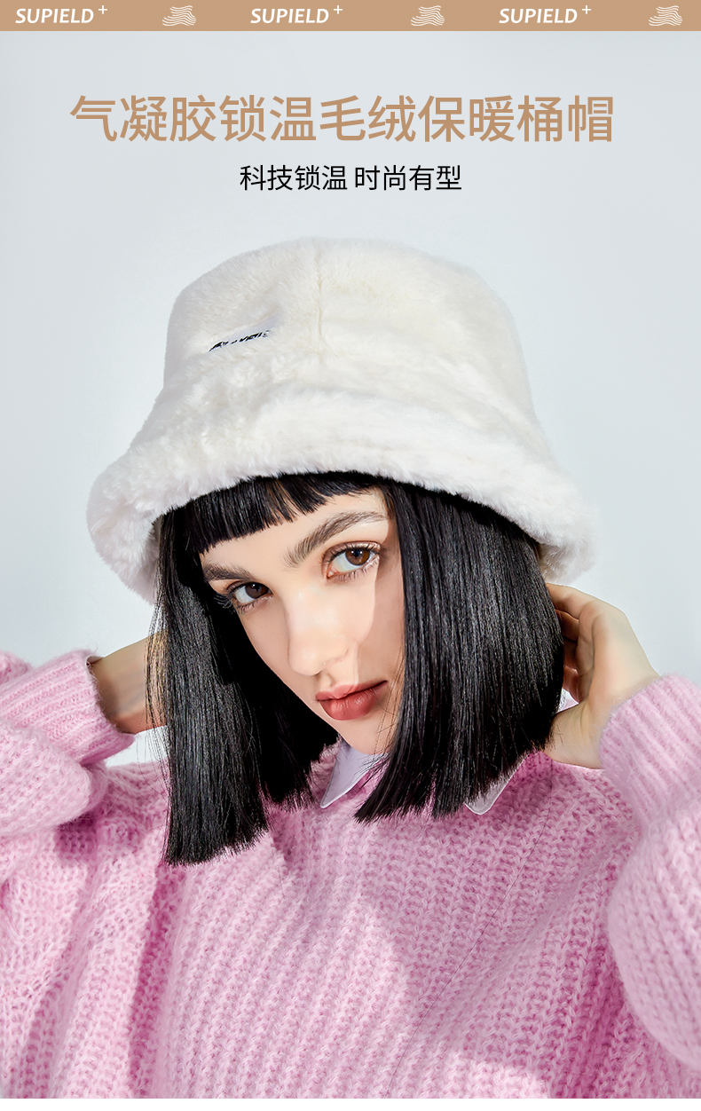 Supield素湃气凝胶保暖水桶帽冬季显脸小渔夫帽盆帽毛绒帽子